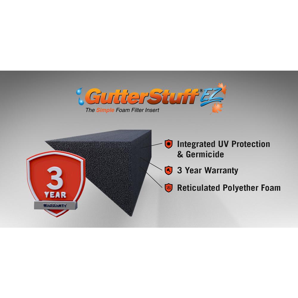 GUTTERSTUFF Original is an easy, self-installed gutter guard that is both affordable and invisible and eliminates dangerous and dirty gutter cleaning. GUTTERSTUFF Original seals out leaves and allows large volumes of water to flow through quickly. No other gutter cover, gutter screen or gutter guard system works as effectively or as economically to keep debris from entering your roof gutters. GUTTERSTUFF Original is made from durable polyether outdoor foam that is lightweight and will not dent, bend, crumble or lose its shape.