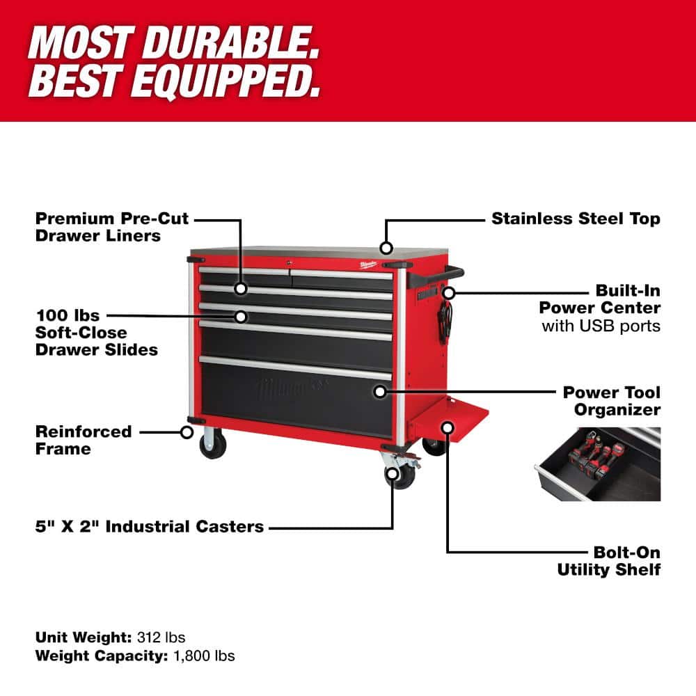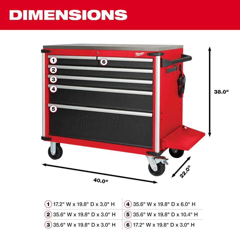 Milwaukee 40" 6-Drawer Mobile Workbench with Stainless Top