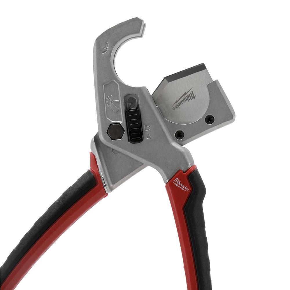 Double-ground V-shaped blade (patent pending) cleaner cuts on 1 in. rubber and plastic tubing/PEX-a tubing