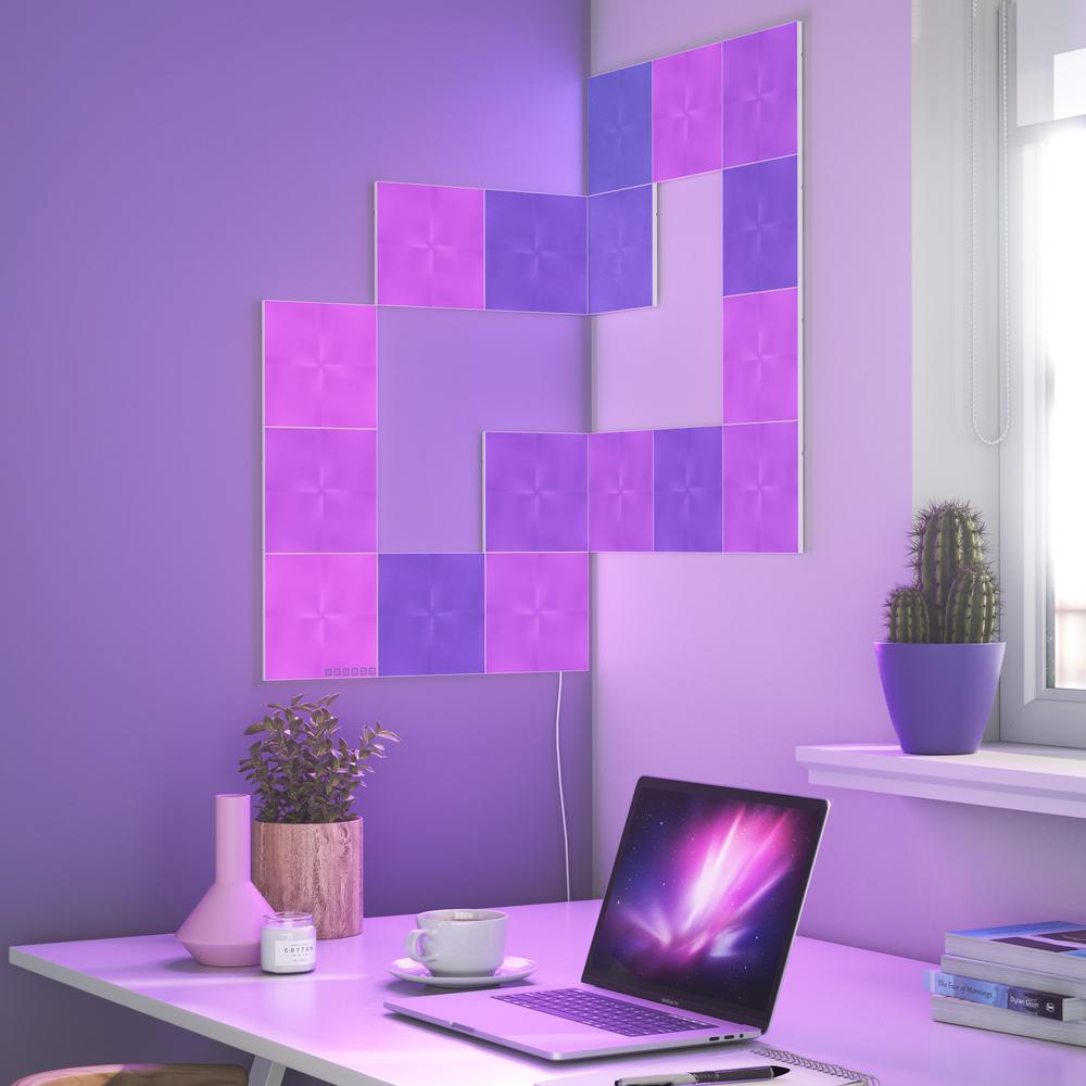 The Nanoleaf Canvas is a light that connects to and delights the senses - playing on sight, sound and touch for a lighting experience that goes beyond mere function. It’s a plug and play light that makes life easier right out of the box. Its edge-lit design, LEGO-like setup, built-in Rhythm technology for real-time music sync, touch and voice control across platforms, transforms your home from smart to intelligent. The Nanoleaf Canvas’ special attention to aesthetics makes it a standalone piece of art that is also the most technologically advanced smart lighting available today. Equipped with color-changing and adjustable white lighting to fit any lighting needs throughout the day. The Canvas comes with hundreds of pre-loaded Scenes that you can use even without a WiFi connection. Advanced customizations are available inside the free App (Android & iOS), create scenes, set schedules, or download/share your scenes with the user community. Activate scenes through programmed touch gestures, your voice via Apple HomeKit, Amazon Alexa, Google Assistant, the Nanoleaf App or IFTTT. Or use the control buttons on the physical control square.