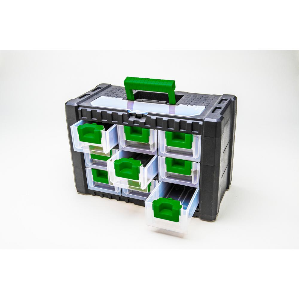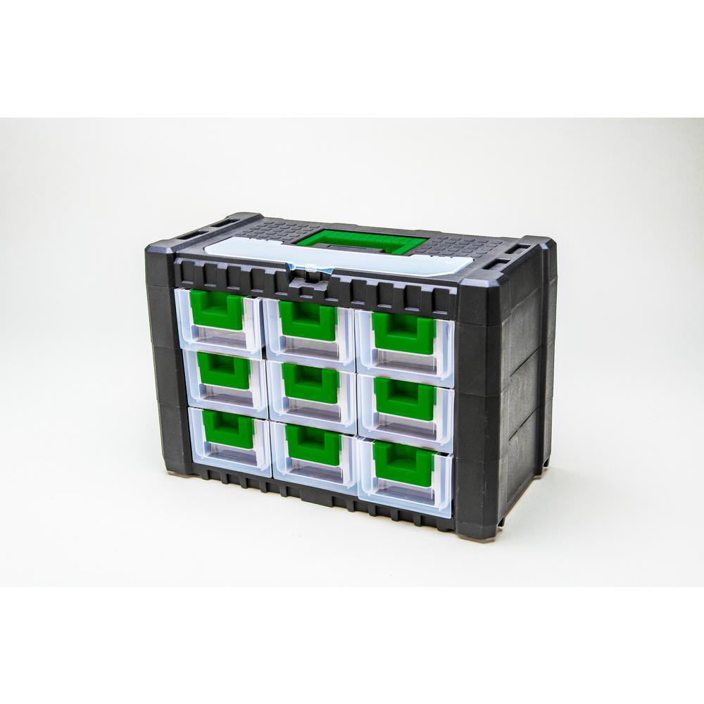 15 in. 9-Drawer Plastic Tool Box in Green or Black