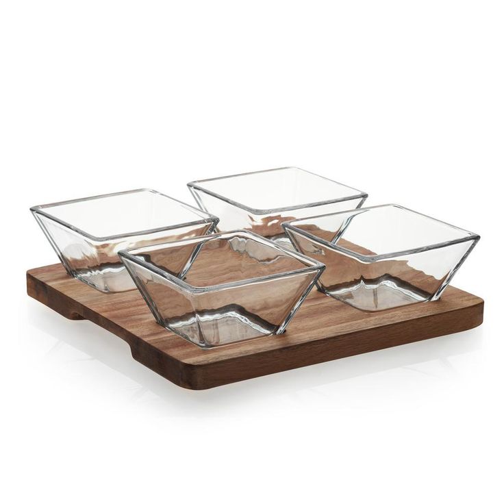 Acaciawood 4-Piece Glass Antipasto Bowl Set with Wood Serving Board