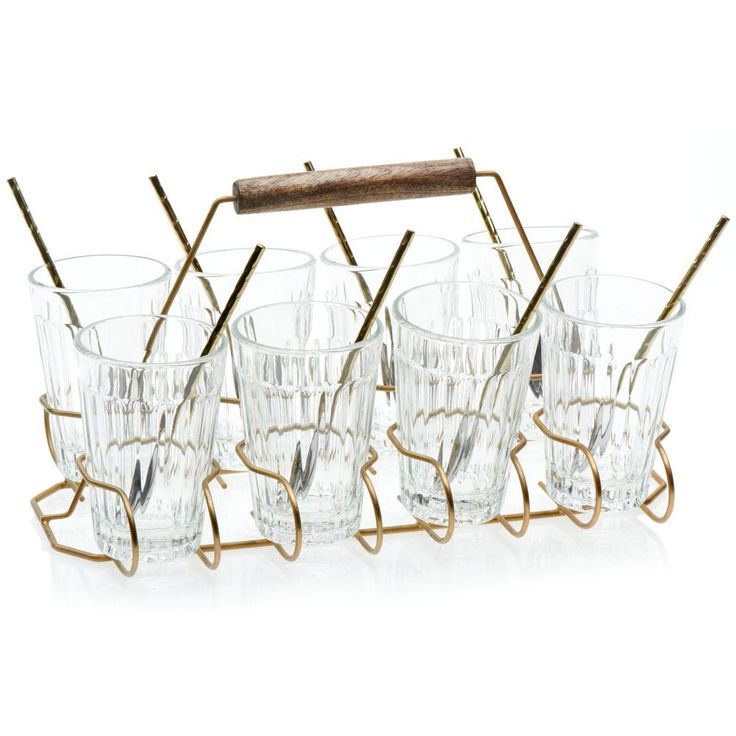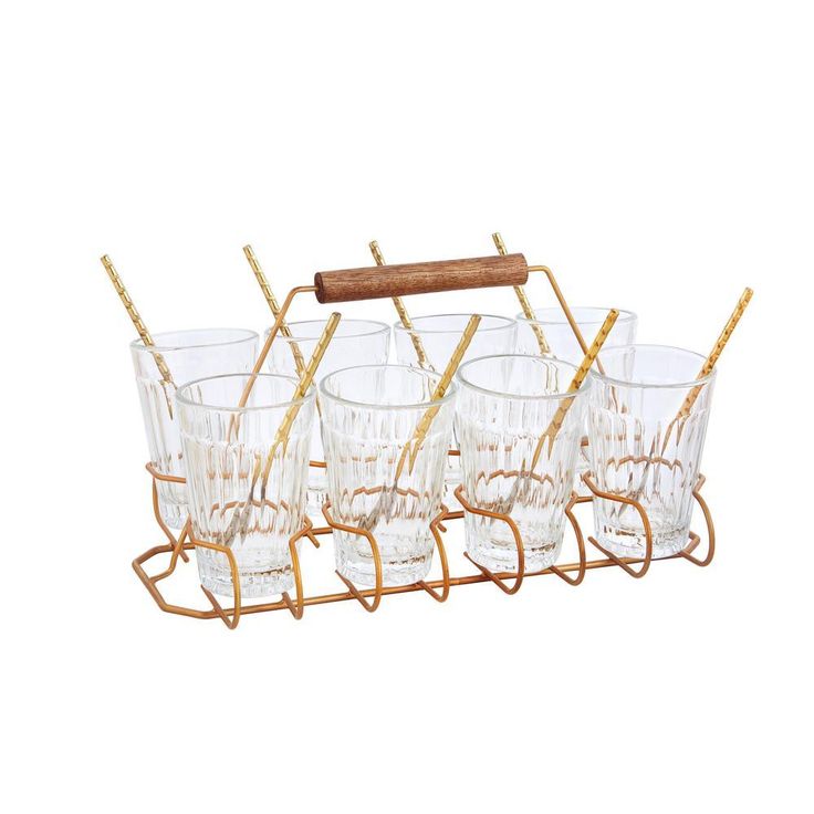 8-Piece Glass and Metal Entertaining Set with Caddy and Individual Serving Spoons