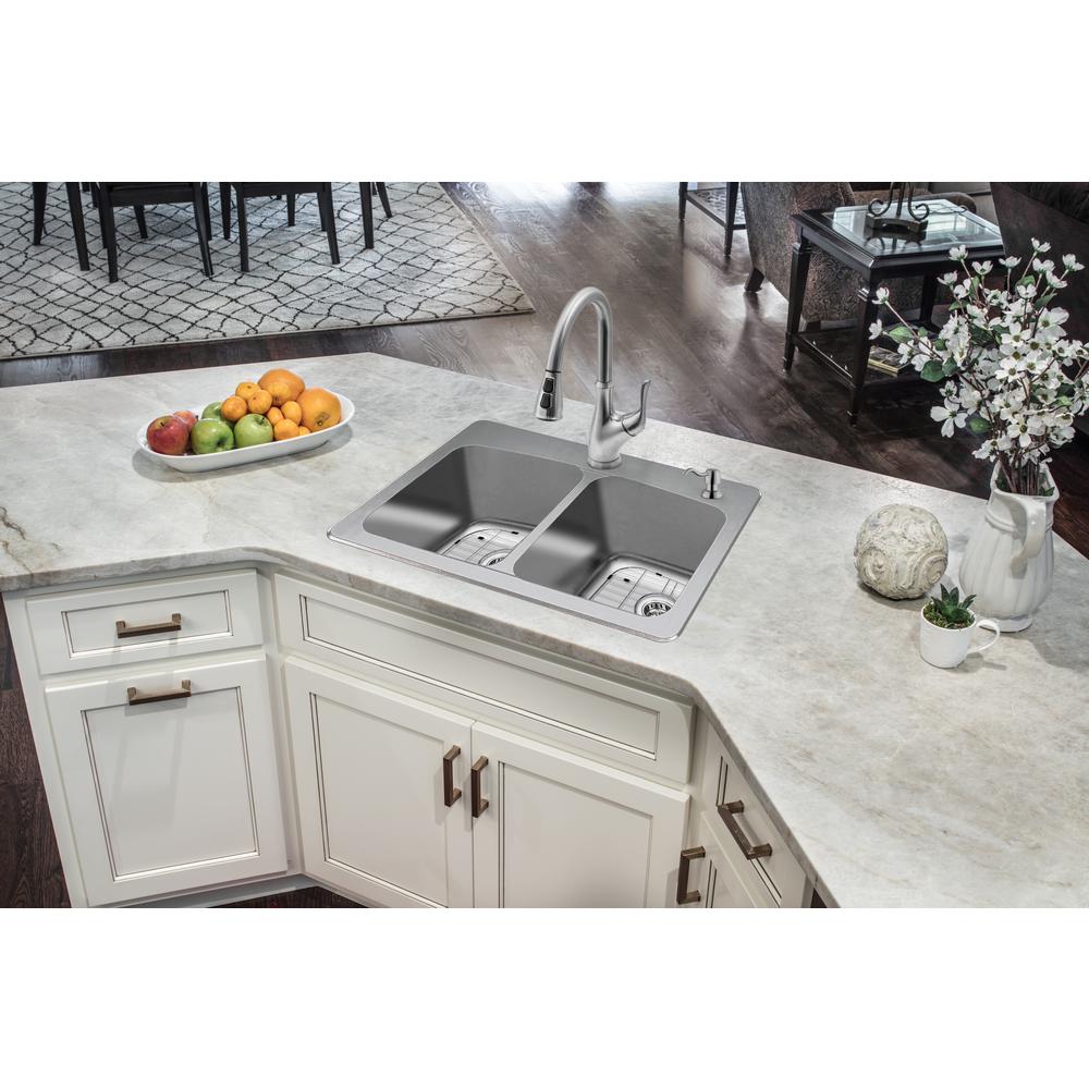 Brushed satin nickel finish keeps the stainless steel sink looking new through years of use