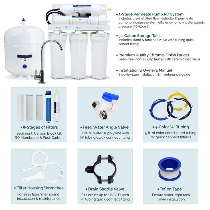 Permeate Pump Under-Sink Reverse Osmosis Water Filtration System with 50 GPD RO Membrane - for Low Water Pressure