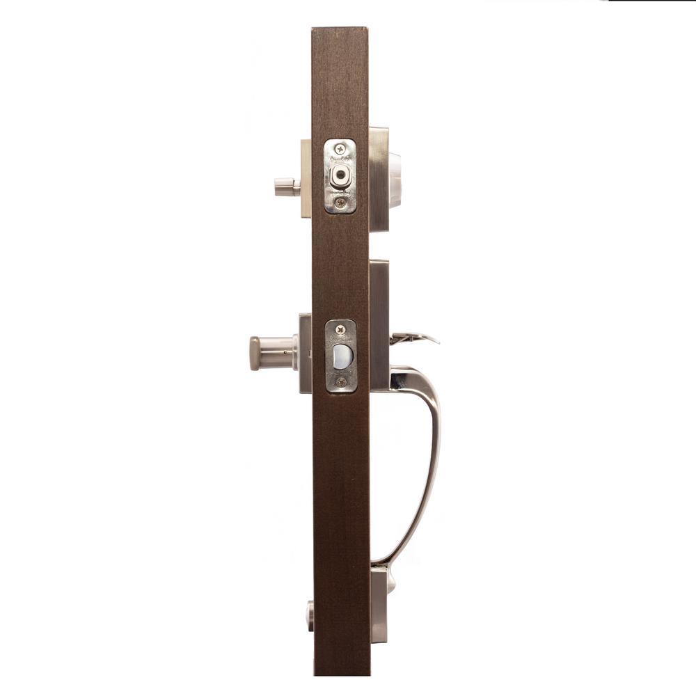 Whether you are remodeling your home or whether you plan to build a new home, this timeless craftsman style front door handle set with craftsman lever interior trim provides the perfect balance between style sophistication and state-of-the-art security. This satin stainless finish is attractive, resistant to smudging and offers outstanding durability. These locksets are designed to fit most residential doors and meet the uncompromising grading standards of the ANSI for residential and builders hardware.