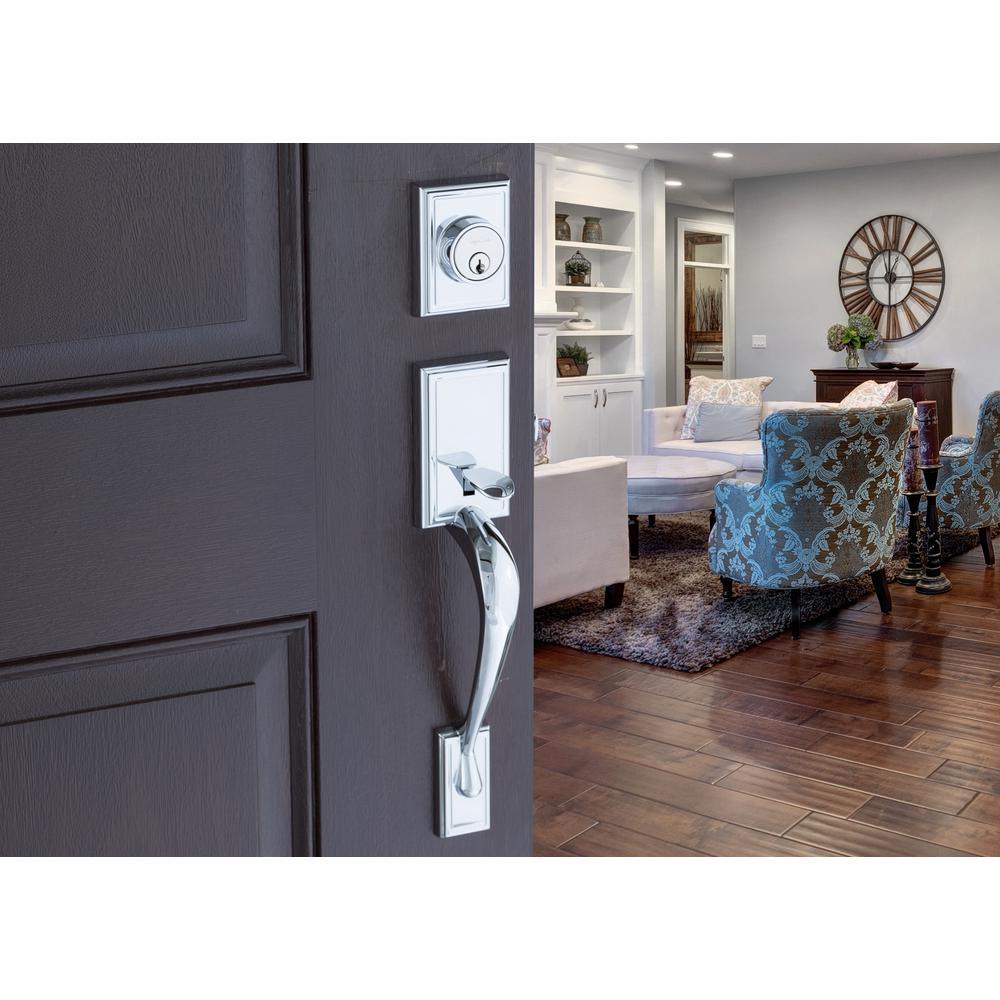 Whether you are remodeling your home or whether you plan to build a new home, this timeless craftsman style front door handle set with craftsman lever interior trim provides the perfect balance between style sophistication and state-of-the-art security. This polished stainless finish is attractive, resistant to smudging and offers outstanding durability. These locksets are designed to fit most residential doors and meet the uncompromising grading standards of the ANSI for residential and builders hardware.