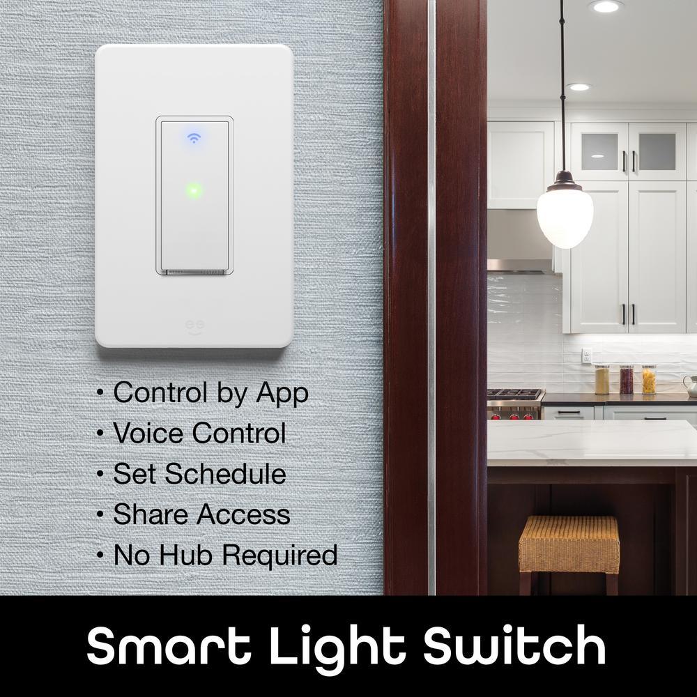- CONTROL FROM ANYWHERE: Using your home Wi-Fi, use 'Schedules' to set your smart light switch to automatically turn on and off while you're home or away. You can set your device to turn on and off depending on your location.
