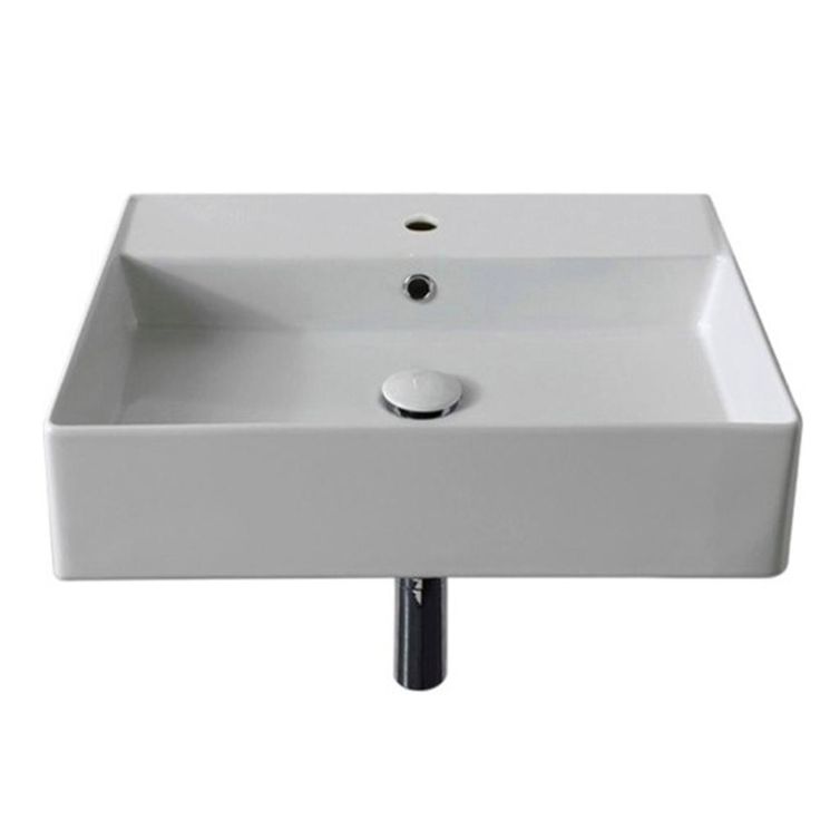 This beautiful white ceramic, contemporary style wall hanging or vessel sink bathroom sink is perfect for modern settings. Available with 1-hole application. This sink perfectly suit the needs of your bathroom.