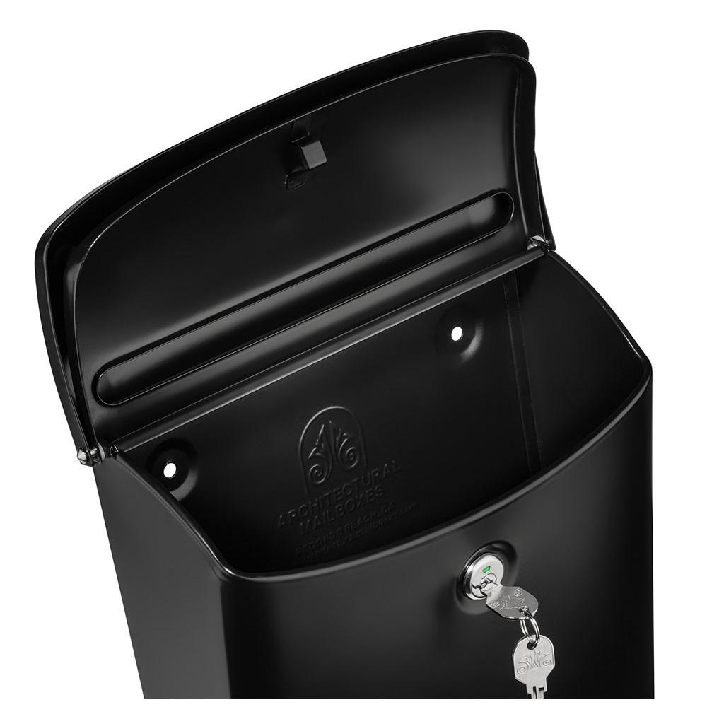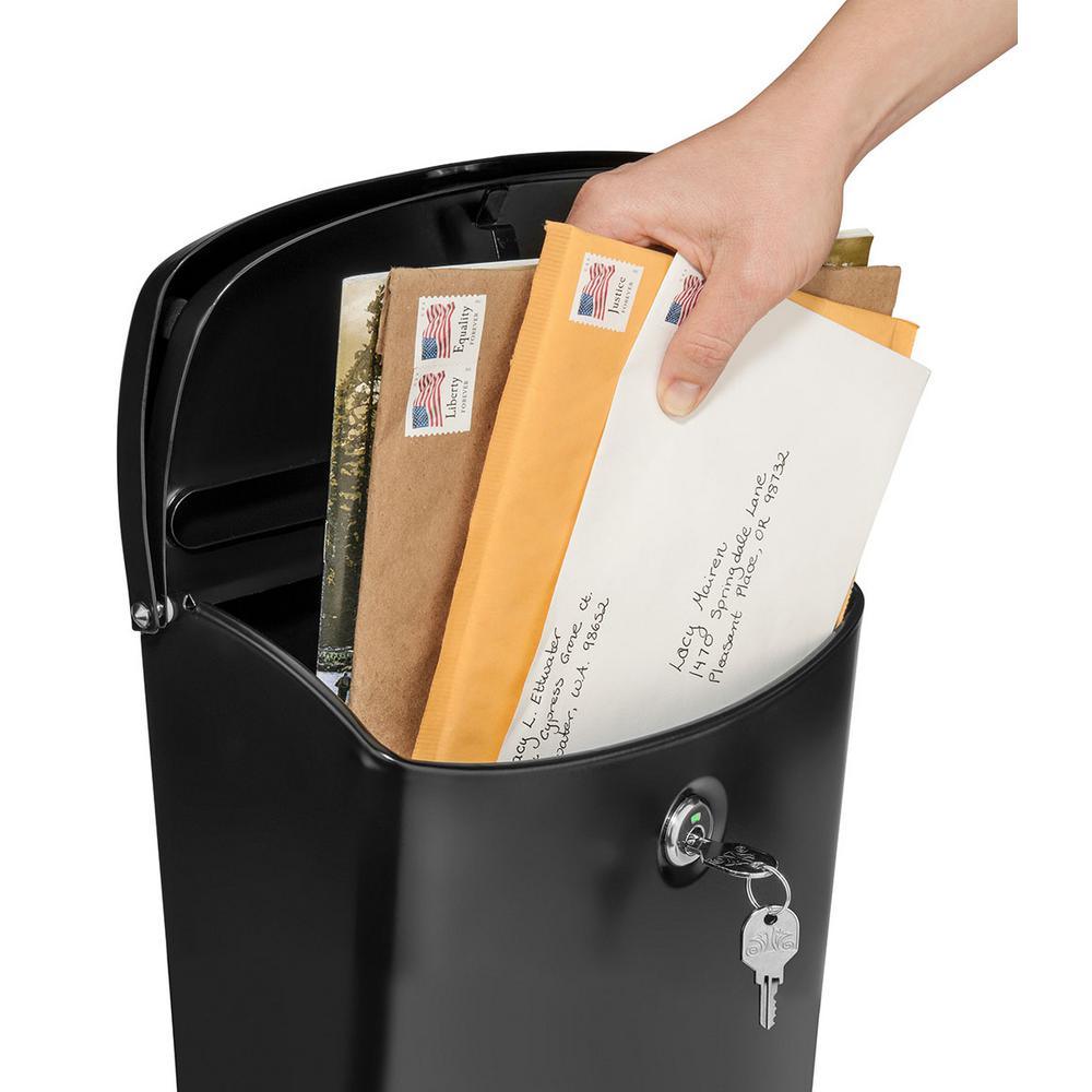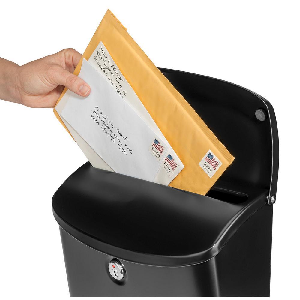 Allow the Parkside Mailbox to bring that finishing touch to any entry way. This mailbox blends aesthetic appeal and functional design elements. The large incoming mail slot, which is discreetly hidden under the top lid, accepts magazines, priority mail envelopes and thick catalogs. Constructed of galvanized steel and fully powdered in black, each mailbox is equipped with a stainless steel lock with a locked/unlocked indicator and 2 keys. The Parkside is pre-drilled and includes hardware for simple installation.