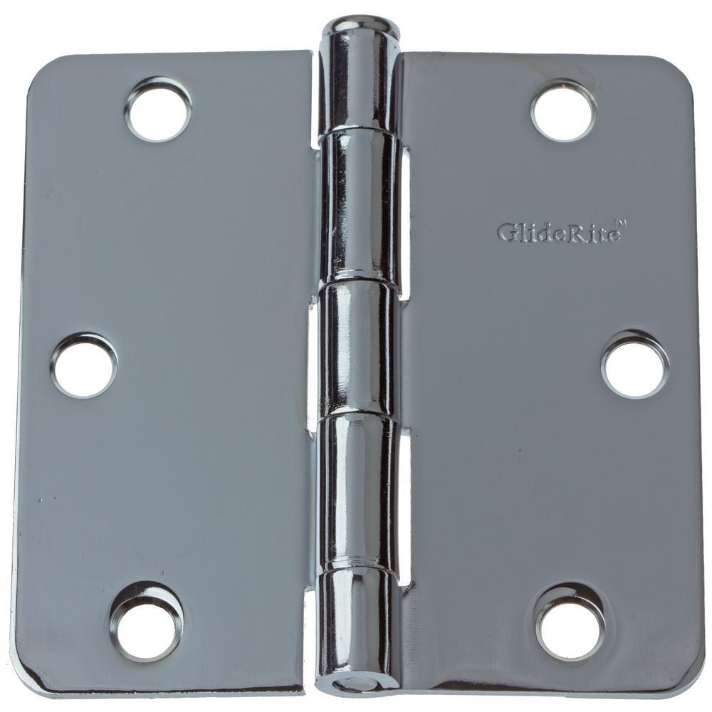 Durable steel butt hinges with a polished chrome finish for interior residential doors. Each 3-1/2 in. hinge features a 1/4 in. corner radius and comes with matching screws for a clean, secure install.