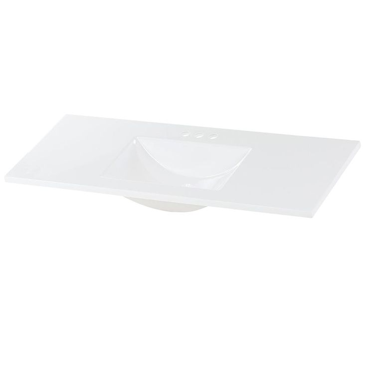 Solid white vanity top with 1 integral rectangular sink