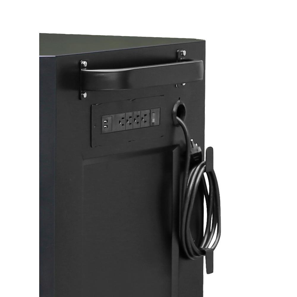 Power and USB outlets on both the chest and cabinet make charging quick and easy