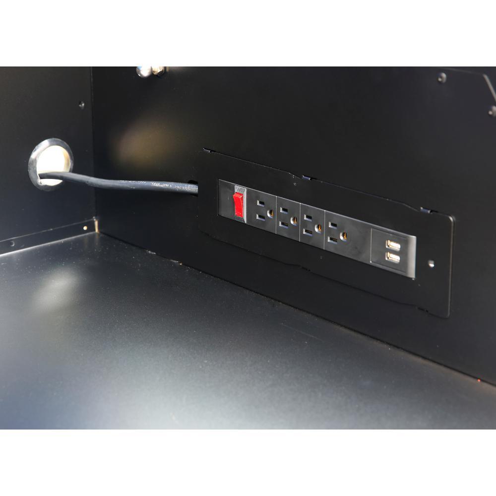 Power and USB outlets on both the chest and cabinet make charging quick and easy