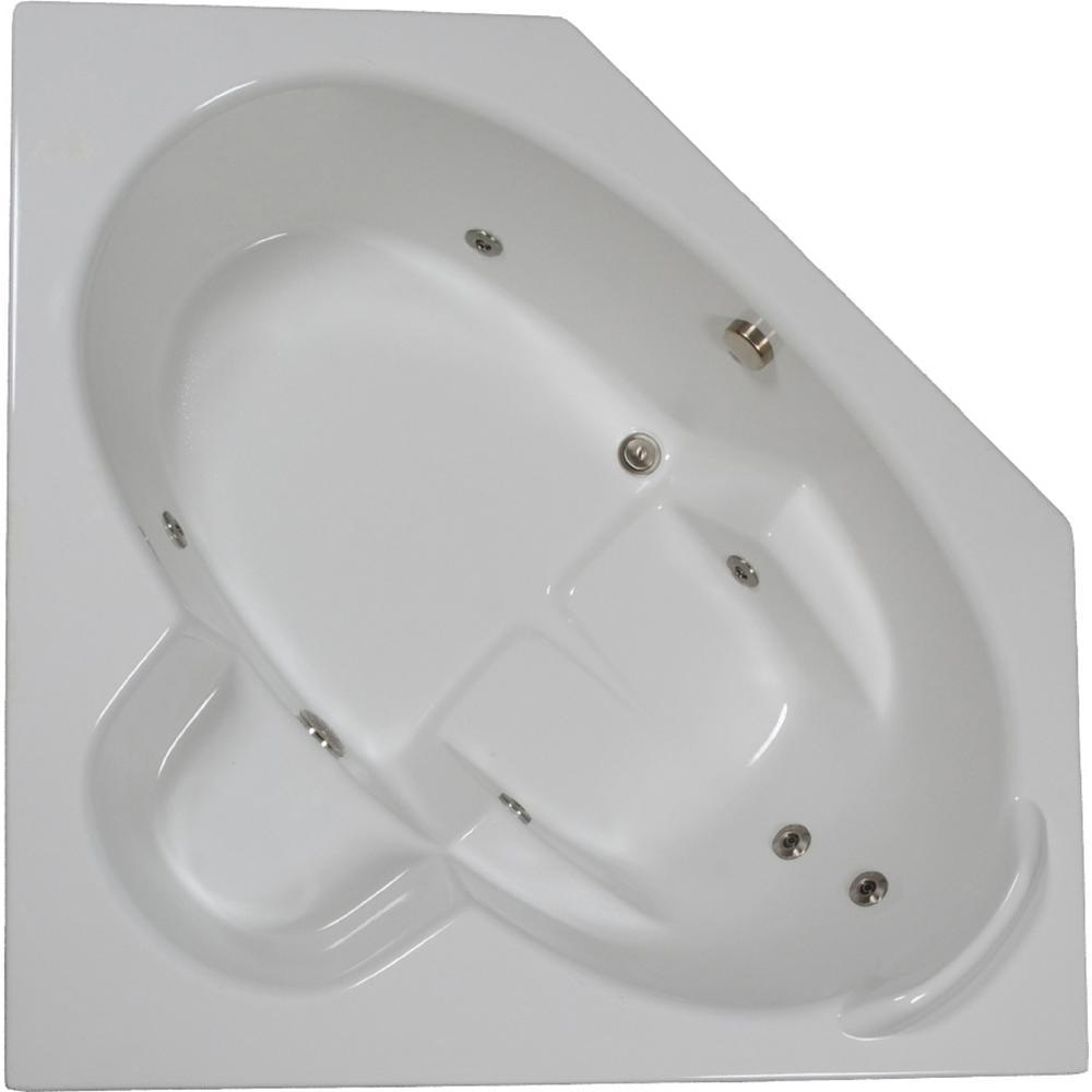 Treat yourself like a queen with all the luxurious amenities built into the 60 in. x 60 in. RN whirlpool tub. Designed to slide right into a corner, this tub is specially made for one person. The molded seat, lumbar support and head and arm rests are befitting of a throne you can sit back in and wash away the cares of running a busy life. A built-in vanity seat is the perfect perch for shaving your legs. The top deck has ample space for installing a tub filler with faucets and a hand-held showerhead, still leaving room for lush bathing products. An oval bathing well adds beauty and reaches from corner to corner giving you abundant room to stretch out your legs. All this plus six whirlpool jets you can adjust for pressure and direction to get a spa-quality hydro massage at home.