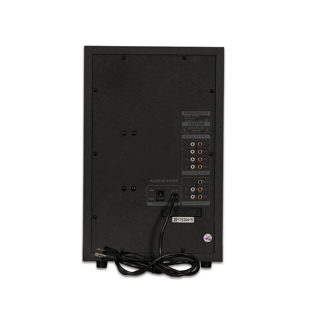This Acoustic Audio 5.1 Bluetooth System features a contemporary design and is a stylish addition to any home. This 1000-Watt, 6-piece system includes 1 8 in. powered subwoofer, 4 tower satellite speakers and a bookshelf center speaker as well as cables and instructions needed to Plug and Play any audio source with a RCA audio output or use the front panel USB interface or SD/MMC card input. Built in Bluetooth receiver. Use it for your home theater system, personal computer or laptop, gaming system, cell ph1, MP3 player or any other audio devices with 3.5 mm headph1 output. The powered subwoofer features independent speaker controls as well as bass, treble and volume functions. It utilizes a digitally tuned wooden enclosure for increased bass response.