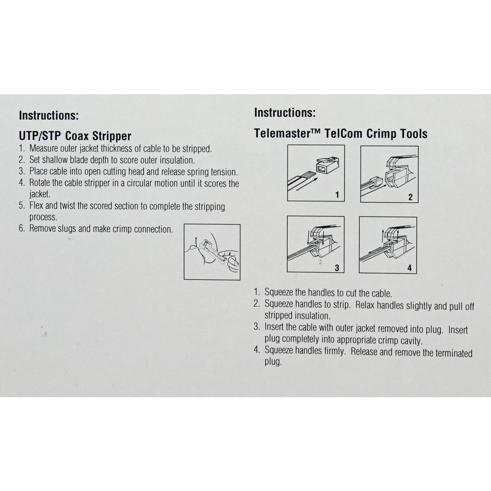 30-496 telemaster crimps industry standard CAT5e/6 RJ-45 (8P8C) and RJ-11/12 (6P6C/6P4C) modular plugs