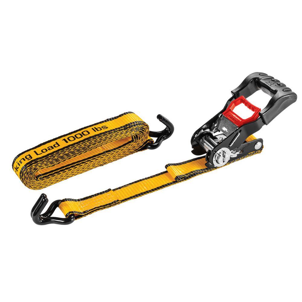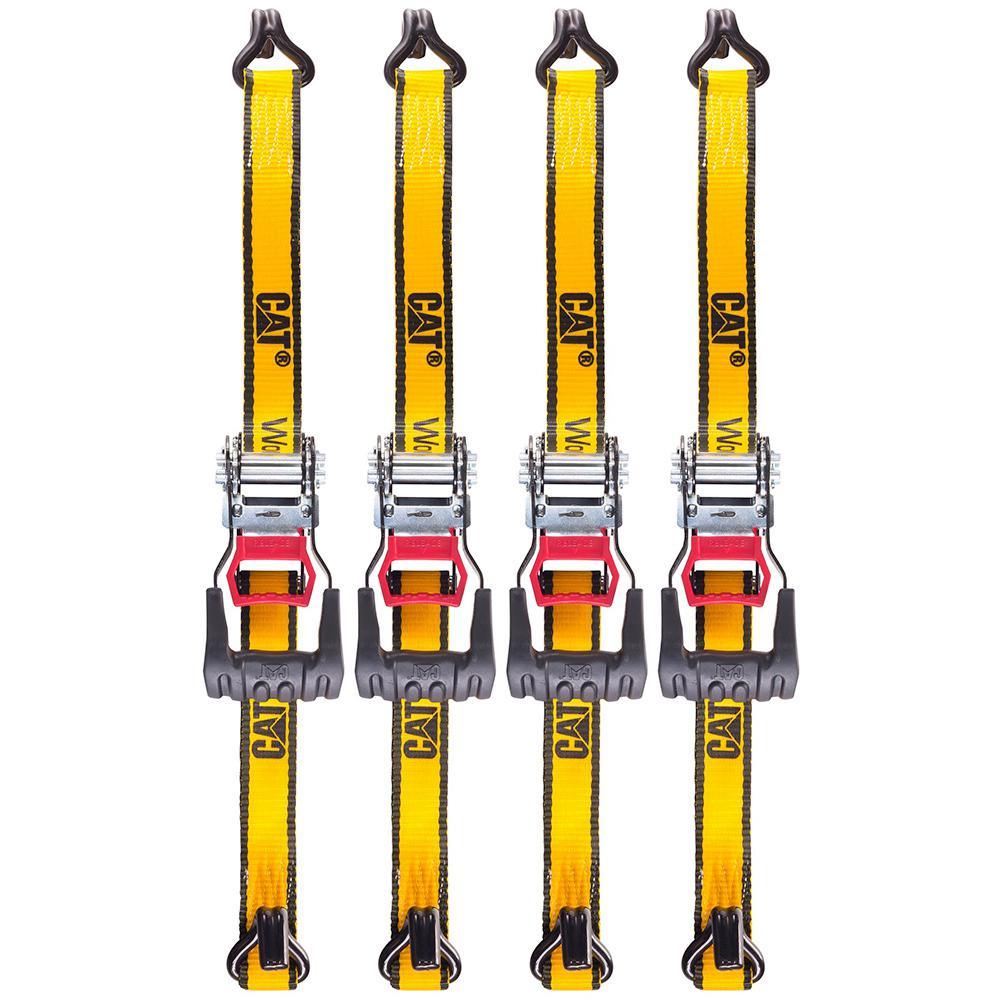 Designed and built to perform in the most demanding tasks and conditions, CAT tie-down straps are Built for It. Use this 4-piece set of heavy-duty 1-1/4 in. x 16 ft. ratcheting tie-downs to secure furniture, ATVs, side-by-sides and more. Each high visibility yellow strap offers 1,000 lbs. working capacity, with rubber coated double j-hooks and molded rubber ratchet handles.