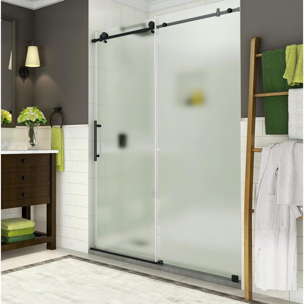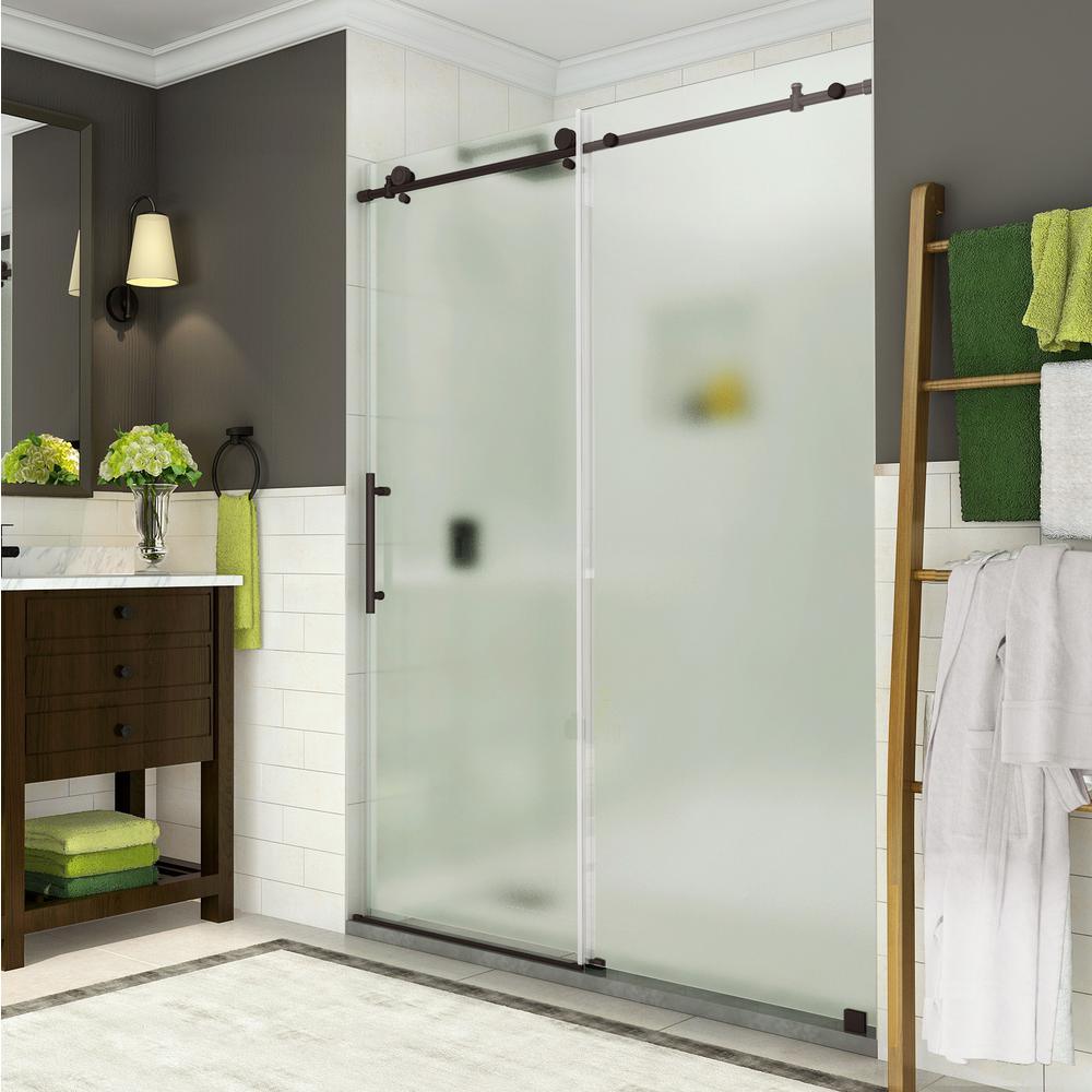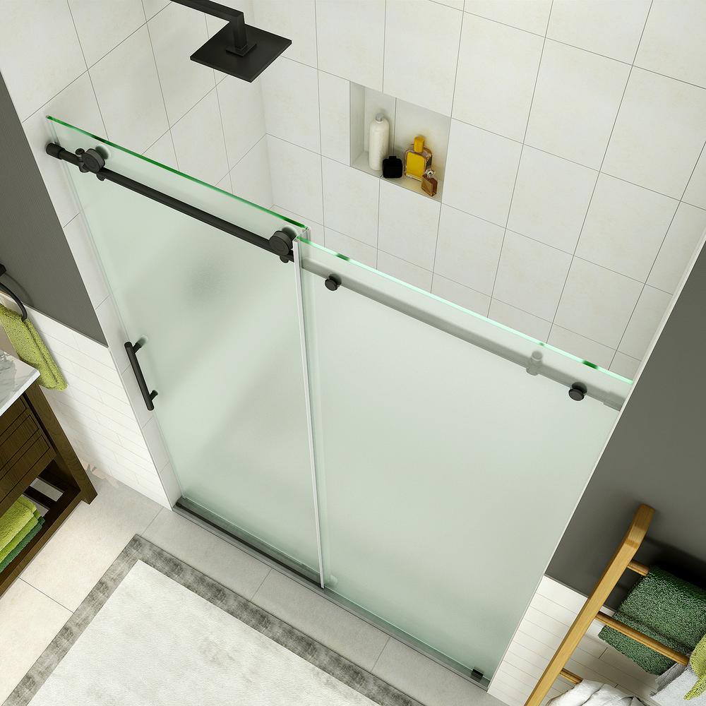 56 in. to 60 in. W x 76 in. H frameless sliding shower door with frosted glass