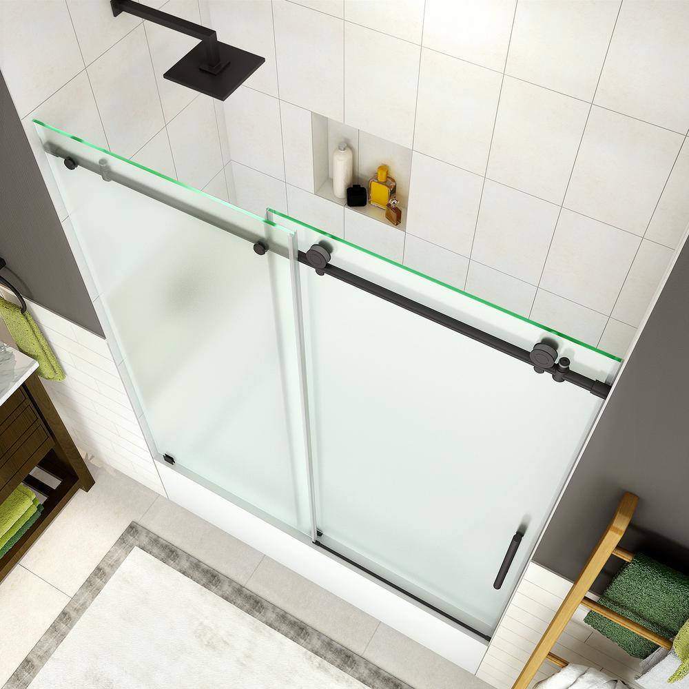 56 in. to 60 in. W x 60 in. H frameless sliding tub door with frosted glass