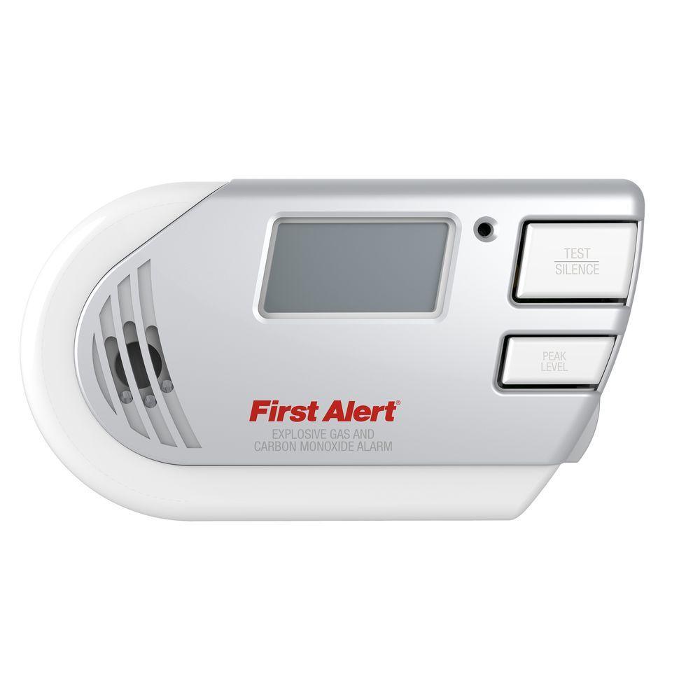 First Alert plug-in combination natural, methane, propane gas and carbon monoxide detector with battery operated backup. Household multi gas detectors and explosive gas leakage detectors from First Alert. Backlit display for easy reading. Plugs into any standard outlet with no additional mounting necessary. 6 ft. line cord offers multiple placement options. Battery backup ensures alarm works even during power outages. Digital display illuminates hazard level when in alarm or when any button is pressed. Remote mute silences nuisance alarms by pressing any button on a standard household remote control (remote not included). Single button also tests alarm functions. Uses an electrochemical carbon monoxide sensor-the most accurate technology available. 7-year limited warranty. Meets UL standards. Meets code.