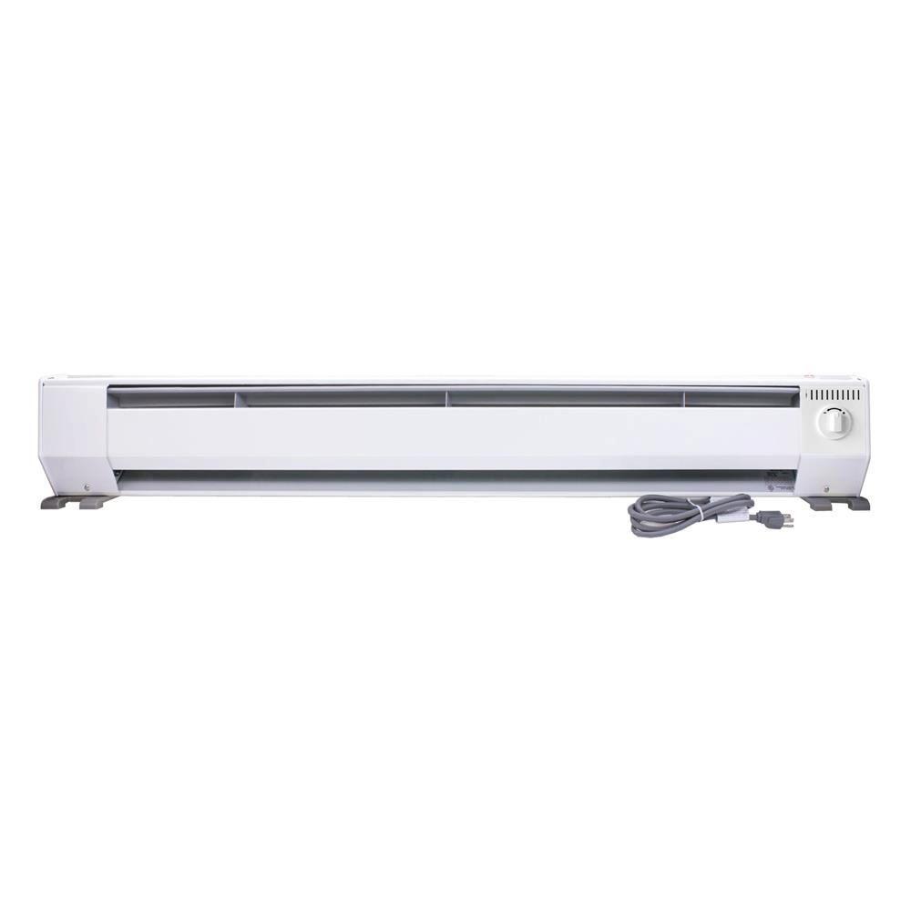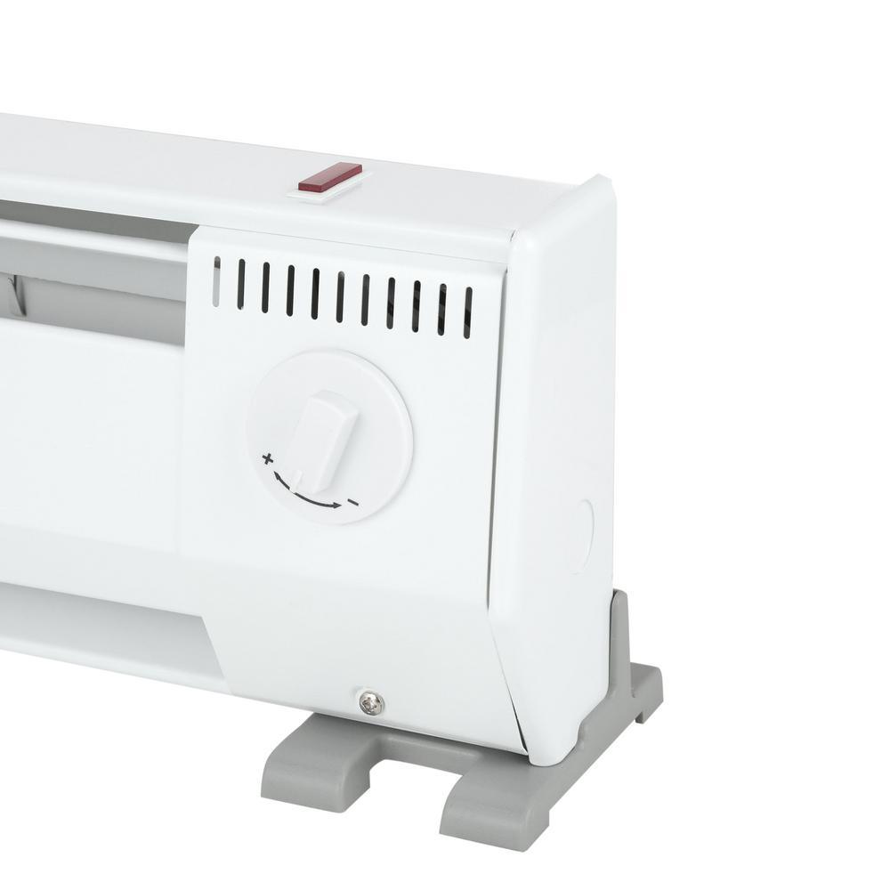 A portable baseboard is an easy way to add supplementary heat to any room. The nice advantage of a baseboard is that it's quiet and trouble free. A tip over switch is standard so that if the heater is knocked over, it will shut off automatically. It has built-in thermostat and a 4 ft., 3-wire grounded outlet plug for additional safety. This heater is so rugged that it approved for U.S. government contracts.