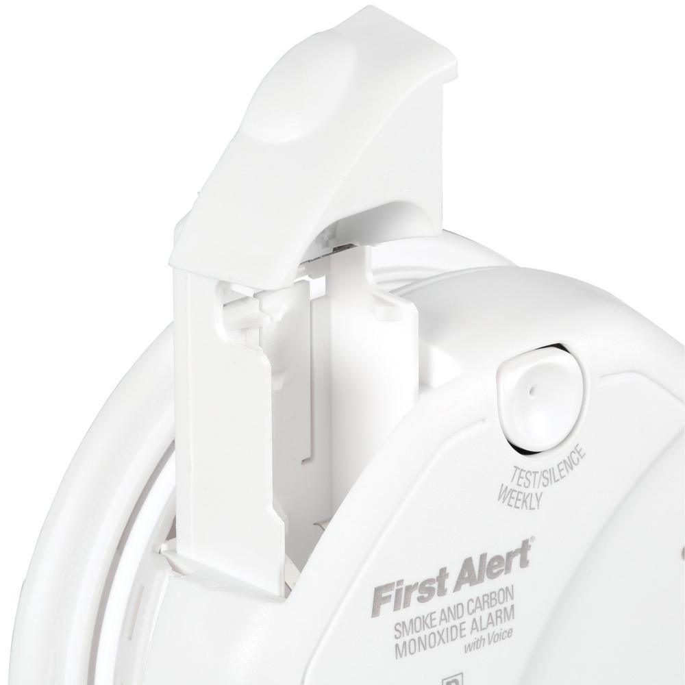 First Alert battery operated talking combination smoke alarm and carbon monoxide detector has a mute button to silence any nuisance alarms. Single button tests all alarm functions. Voice alarm is easy to program for alarm's location within the home (11 pre-programmed choices). Voice alarm also notifies which hazard is being sensed. Studies show that children respond best to voice. Photoelectric smoke sensor reduces nuisance alarms from cooking smoke or shower steam. Uses an electrochemical carbon monoxide sensor-the most accurate technology available. Easy access front loading batteries: no need to remove an alarm from the ceiling to change a battery. 7-year limited warranty. Meets UL standards. Meets code.