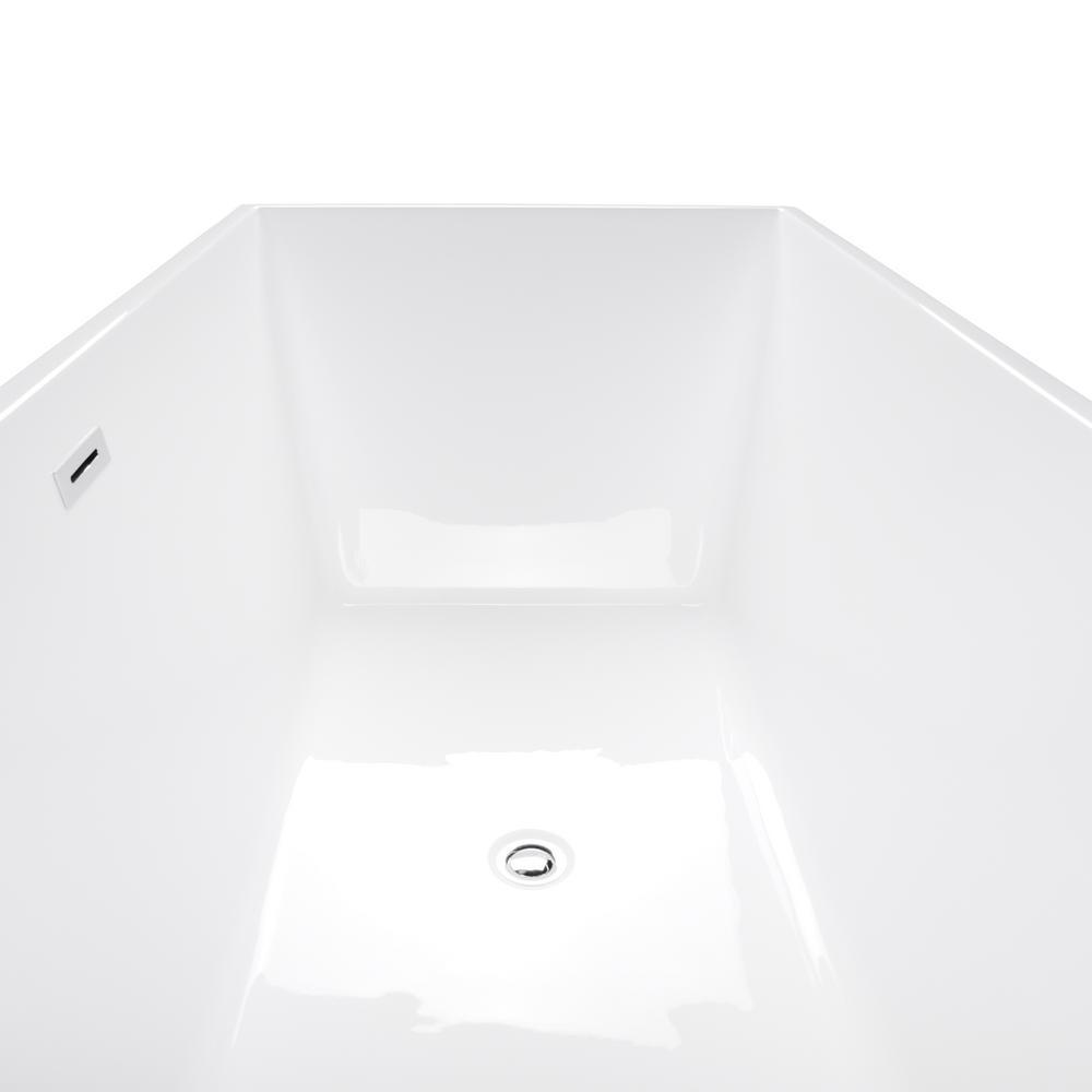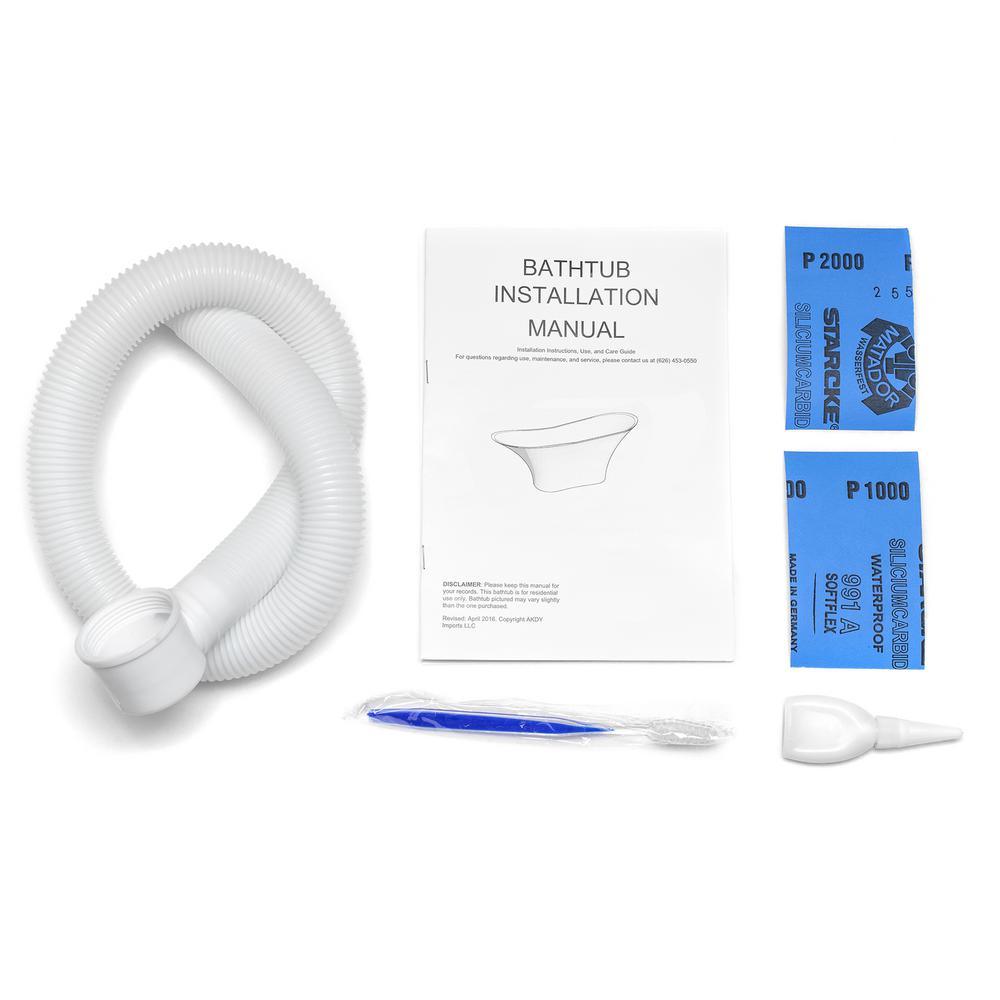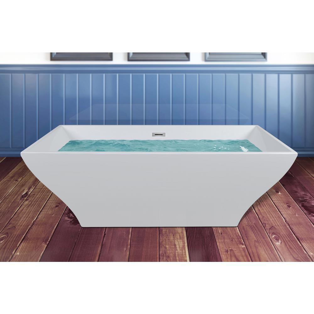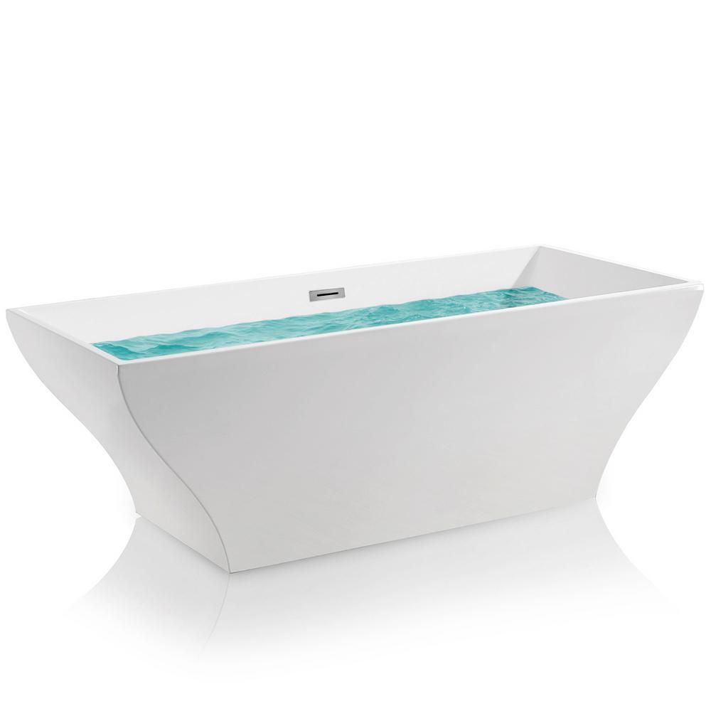 Mixing European styling with modern looks, the AKDY BT0070 freestanding bathtub has a refined look tailored for today's modern homes. A rectangular body with curved ends provides a long body perfect for long soaks without discomfort. An included chrome overflow prevents accidental spills and flooding. Adjustable legs hidden underneath allow the tub to be leveled on uneven flooring for a perfect fit and finish. A flexible tube drain allows for easy installation to your existing plumbing. Externally, it measures 66.93 in. L x 31.5 in. W x 23.2 in. H.