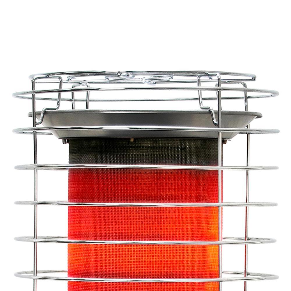 The Dyna-Glo 360 tank top heater emits radiant heat in all directions. This type of heater is specifically designed to distribute heat in a concentrated area, making it less likely to be affected by external factors such as wind. These multi-functional units are CSA certified and can heat up to 1000 sq. ft. Propane tank not included. Variable BTUs, high-efficiency stainless steel heat reflectors, rust-proof chrome guard, tip-over safety switch, match light ignition, safety shut-off valve, and quick-connect P.O.L tank connection make this heater a reliable choice. With a range of 30,000 to 40,000 BTUs, it can run for up to 14.4 hours at 30K, 12.4 hours at 35K, or 10.8 hours at 40K.