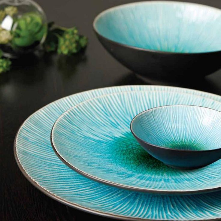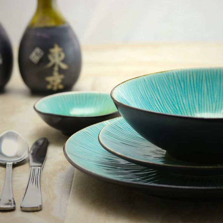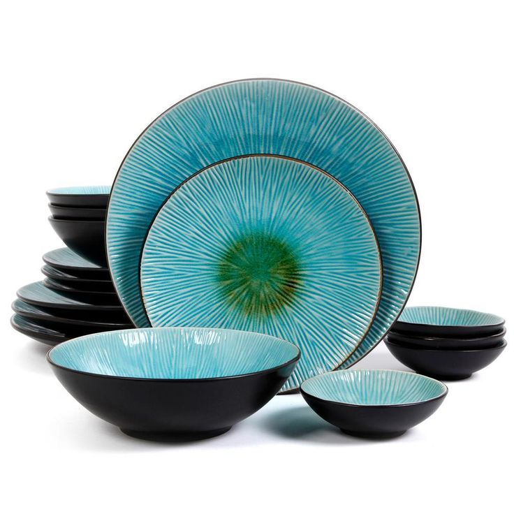 ShangriLa Court 16-Piece Asian Inspired Blue Earthenware Dinnerware Set (Service for 4)
