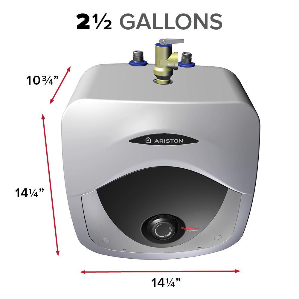 The Ariston Andris 2.5 Gal. 6 Year Corded 120-Volt Point of Use Mini-Tank Electric Water Heater has a mini tank that eliminates the long trip through pipes that water usually has to take from the water heater to the sink. This powerful, yet compact water heaters purpose is to provide you with hot water, when and where you need it. Installation has never been easier, with a simple tap into a cold water line and a standard 120-Volt outlet.