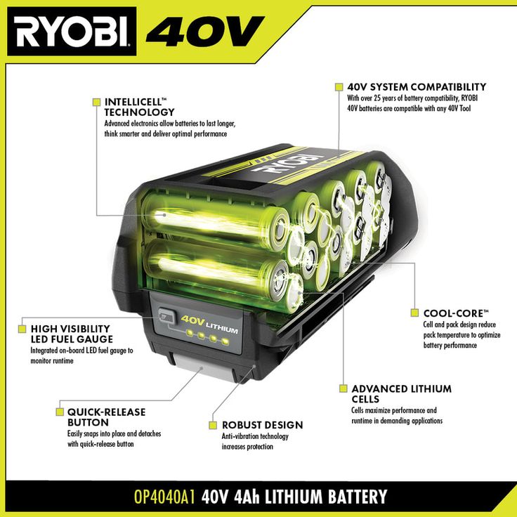Works with all RYOBI 40-Volt lithium-ion tools and chargers