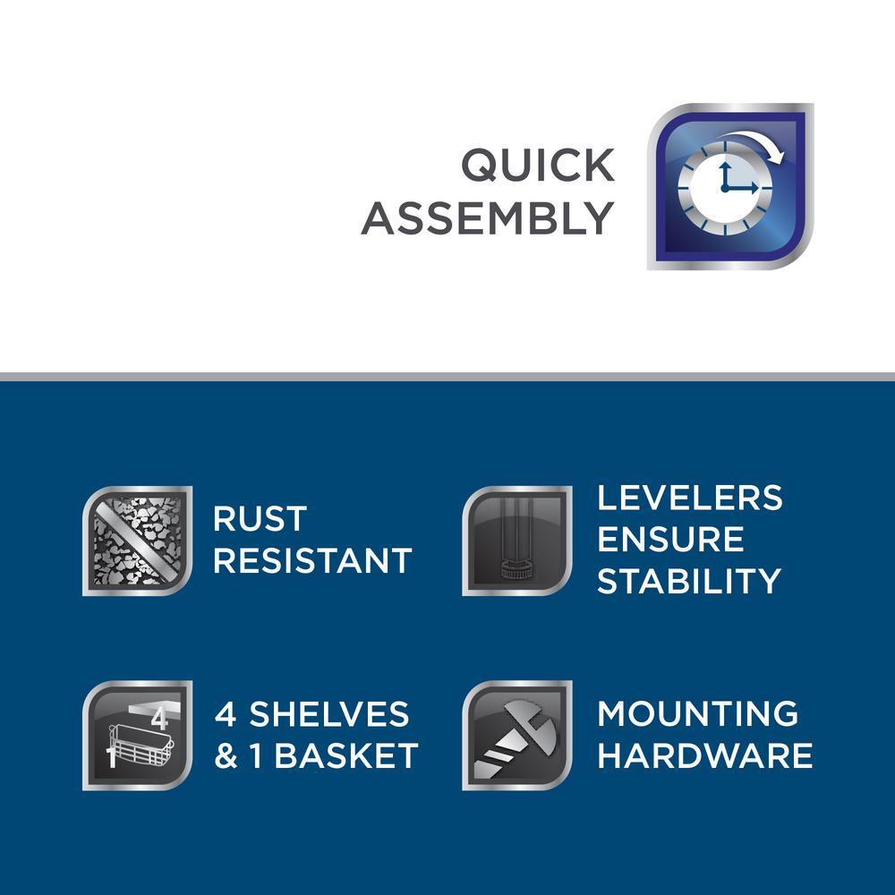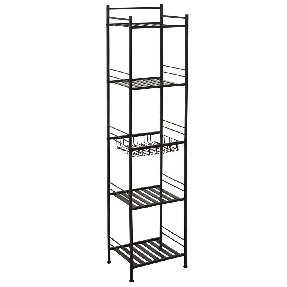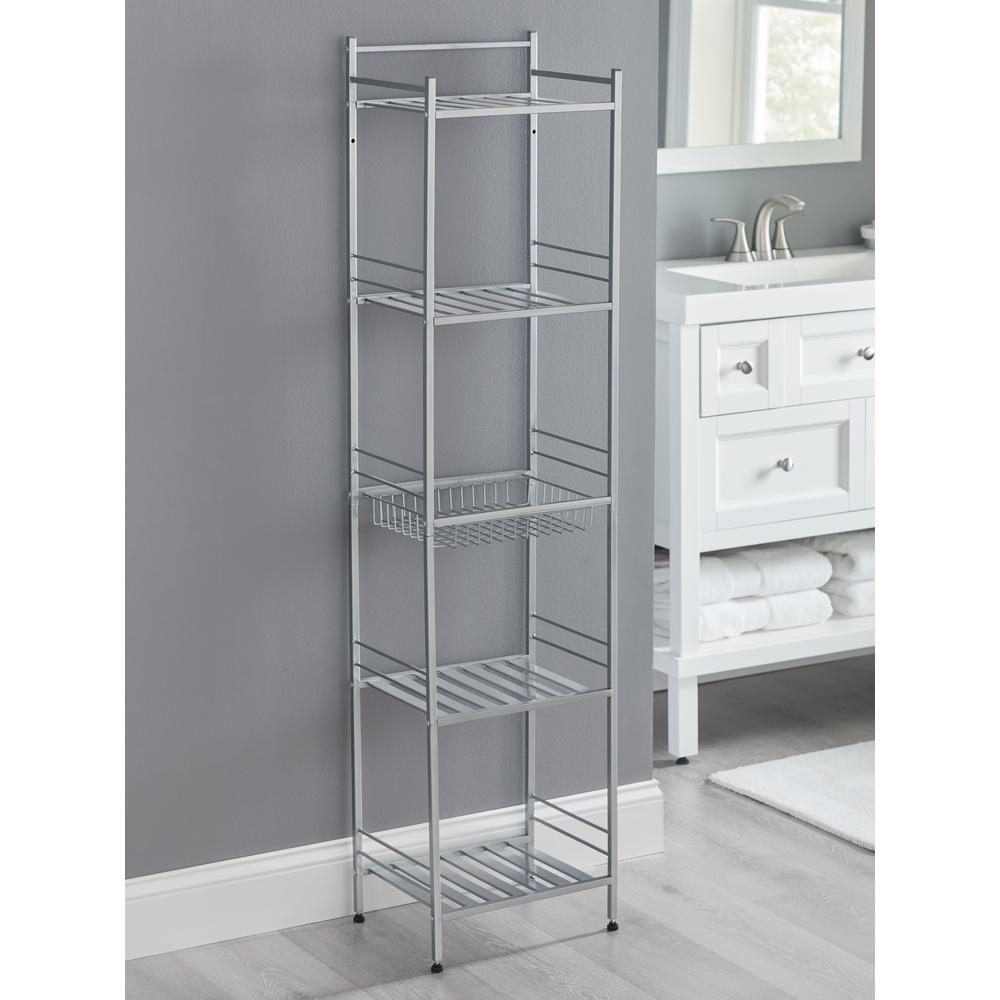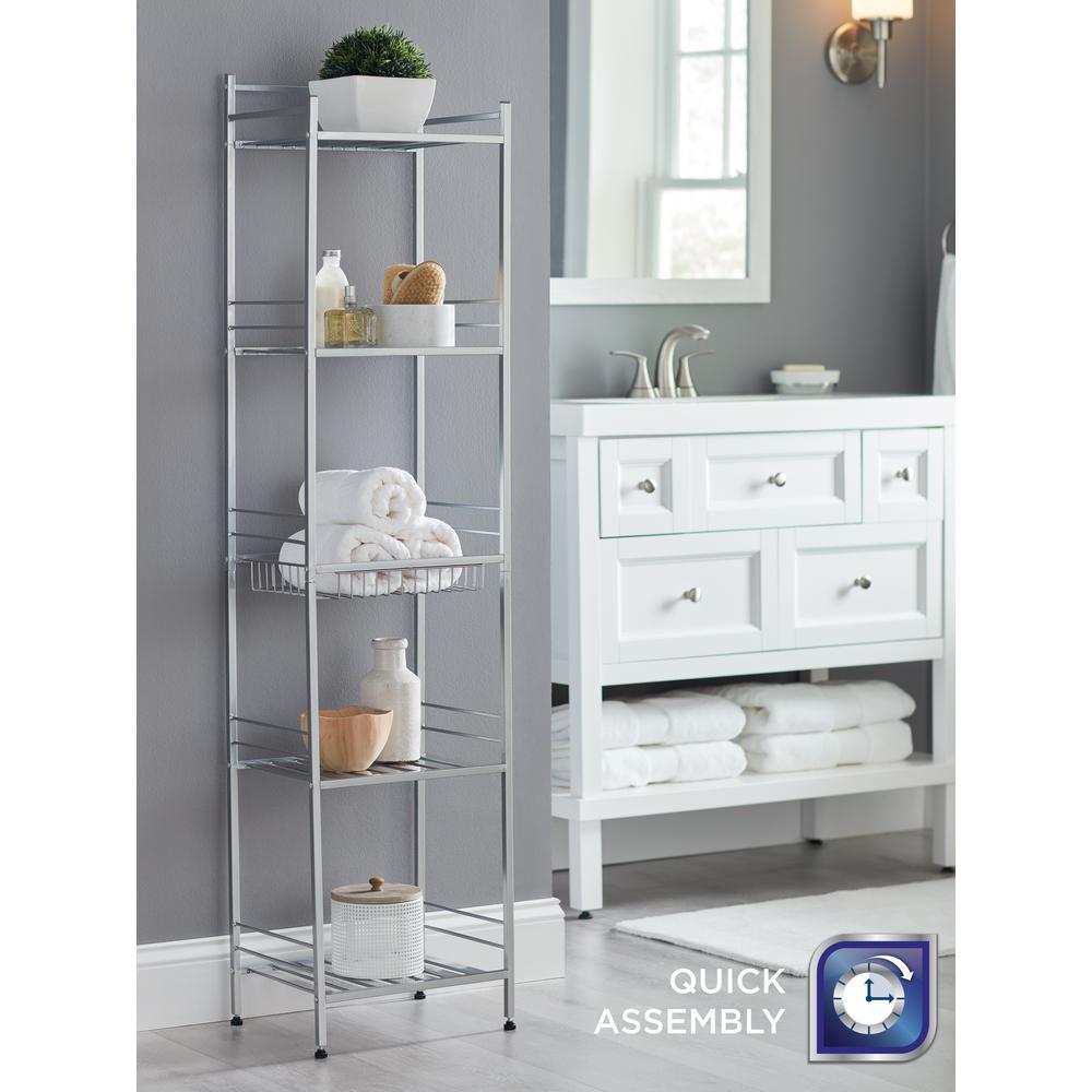 Add valuable storage on wide slat shelves into your bathroom with the Glacier Bay Slat Style Towel Tower. Perfect for linens, but also suitable for toiletries or decorative accessories, the towel tower has four wide, flat slat shelves that provide a stable storage surface. An additional deep basket provides even more room. The towel tower is easy to assemble. Use the tower on its own or with its coordinating bathroom space saver. Both will make an ideal addition to any home storage or bath organization project inspired by extra time spent relaxing around the house or working from home.