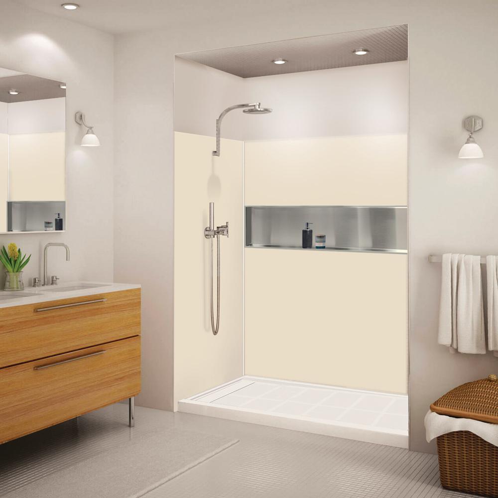 Q: Can the panels be trimmed? A: Yes. Panels can be cut to size for a custom fit around plumbing or to match your alcove dimensions.