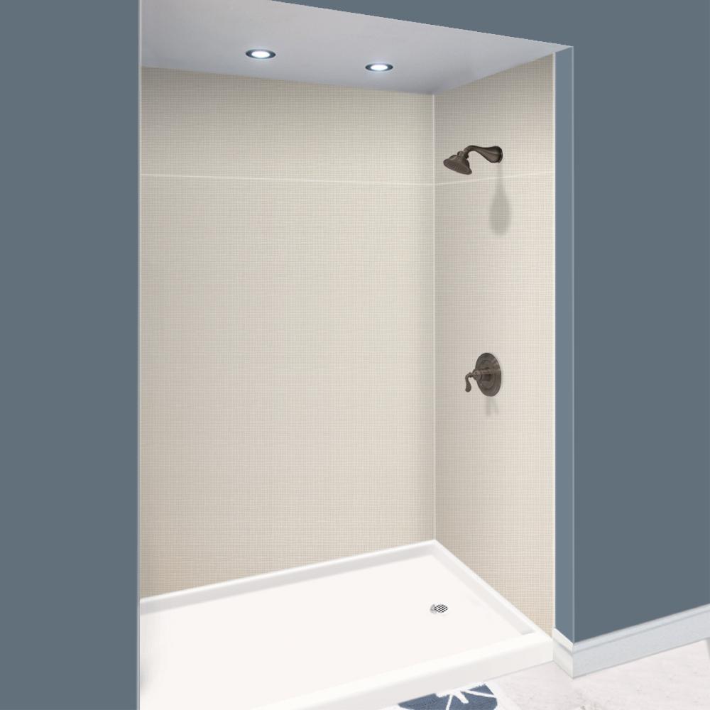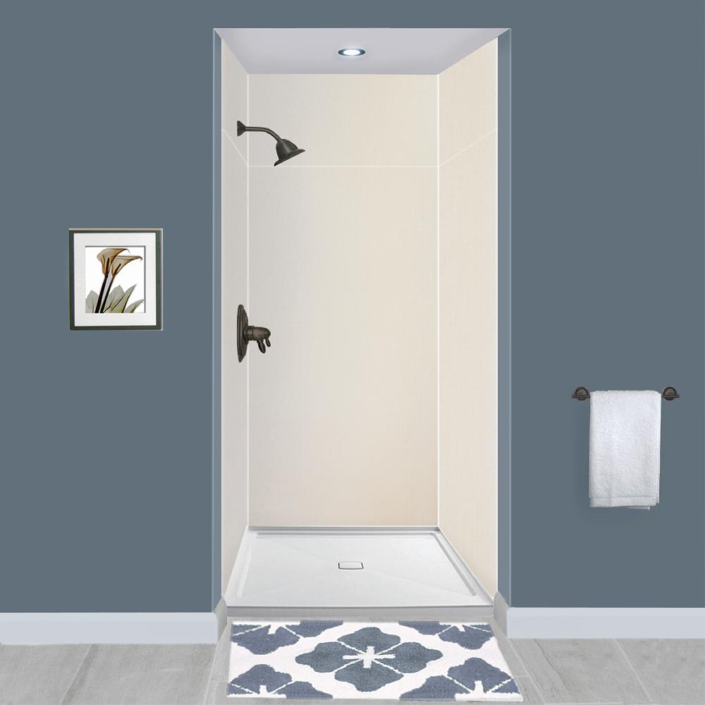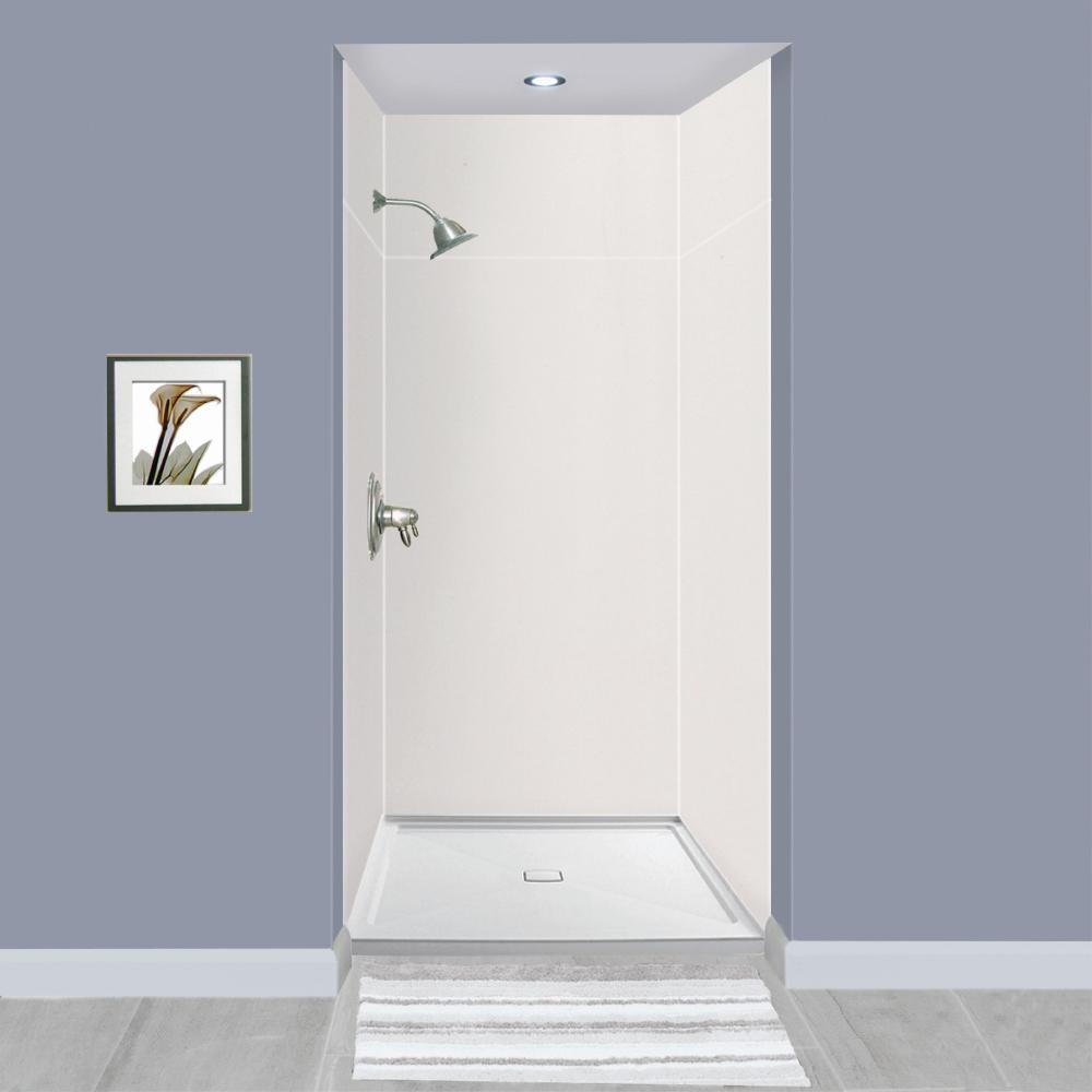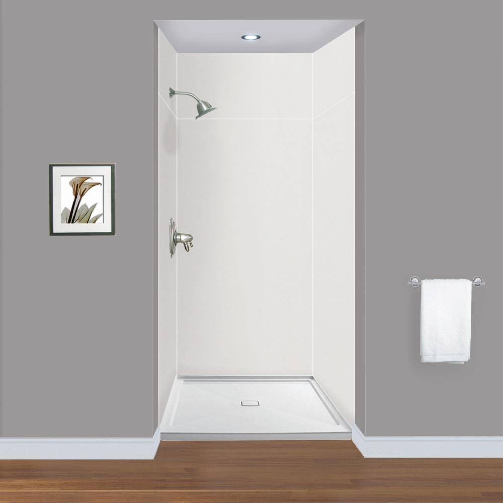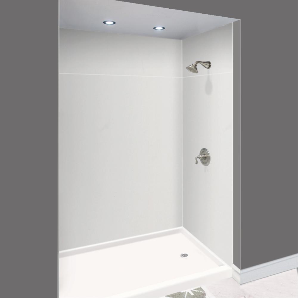 Expressions 4-piece adhesive alcove shower wall surround, 48 x 48 x 96 in, Bianca