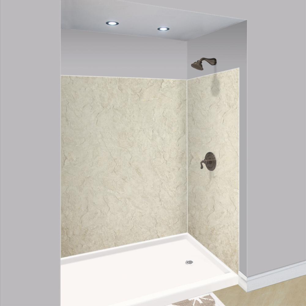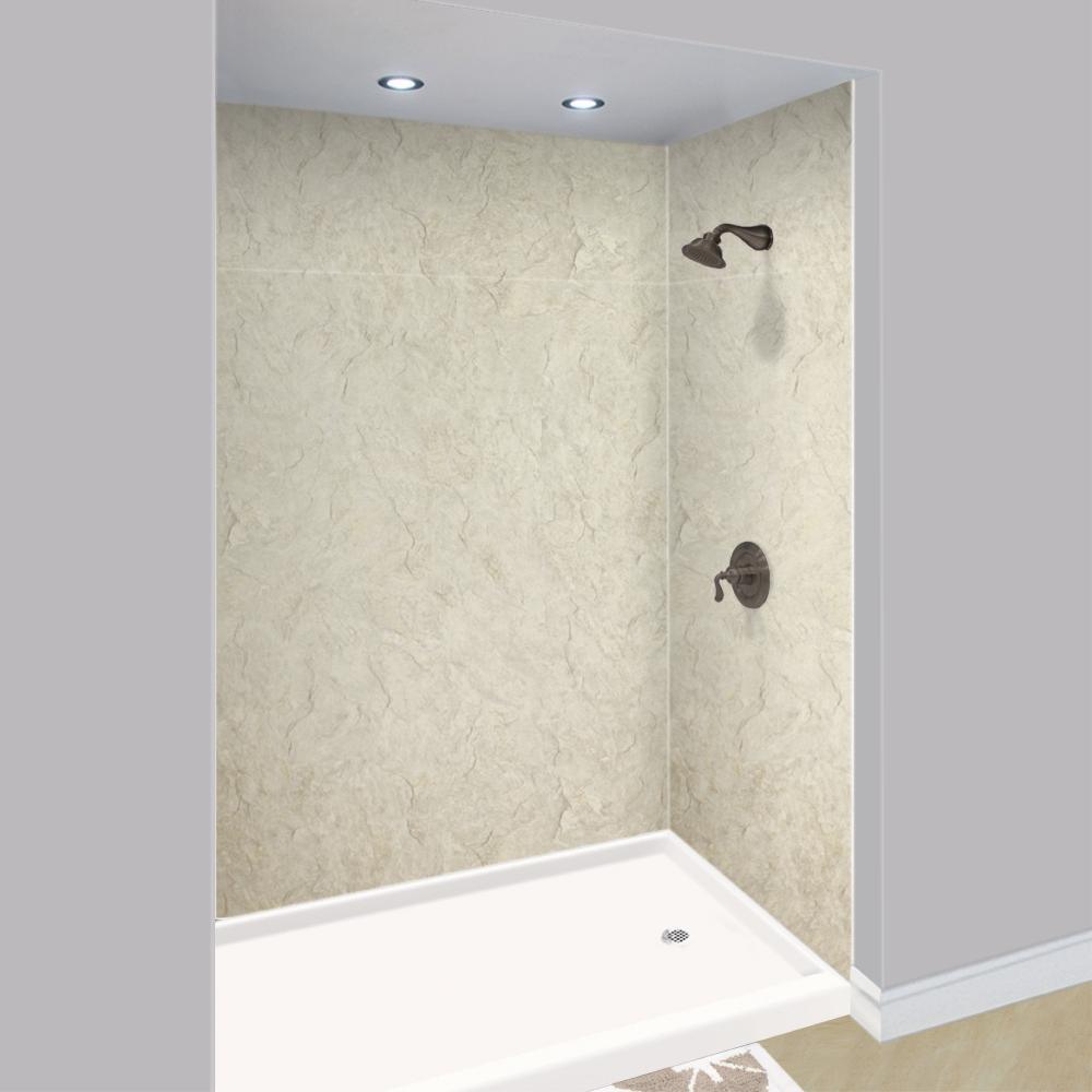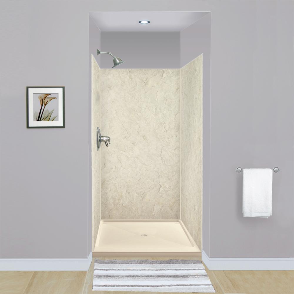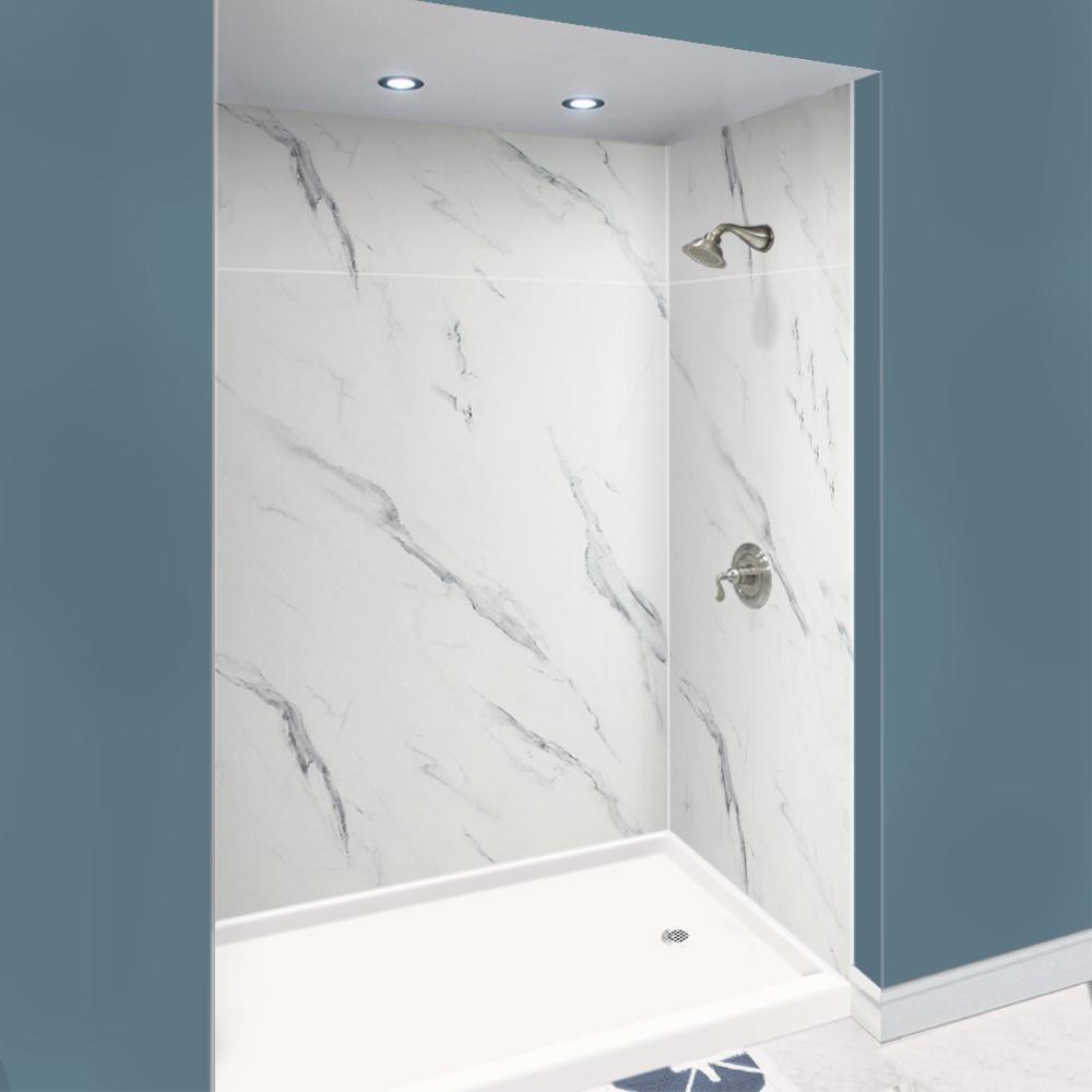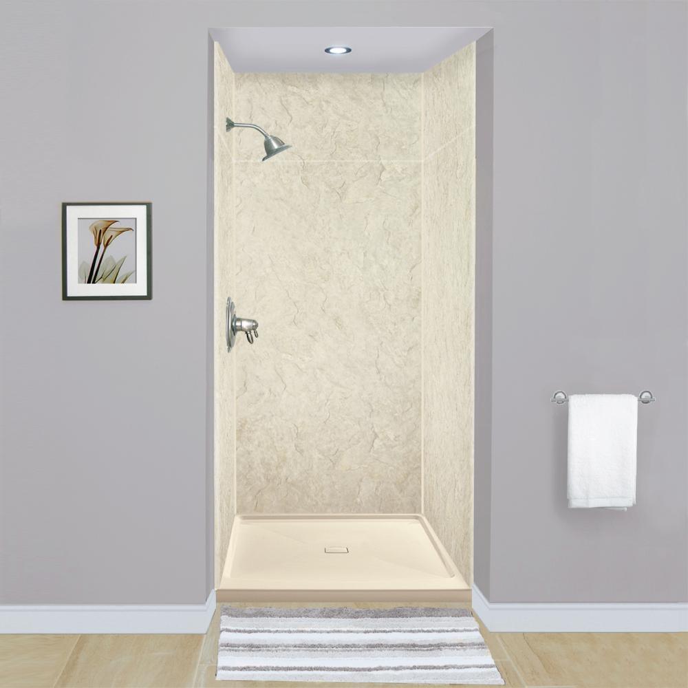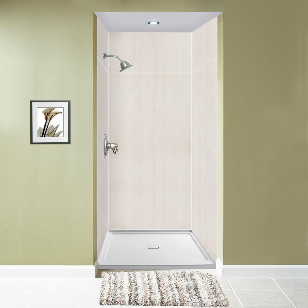 Expressions 4-piece adhesive alcove shower wall surround, 48 x 48 x 96 in, Bianca