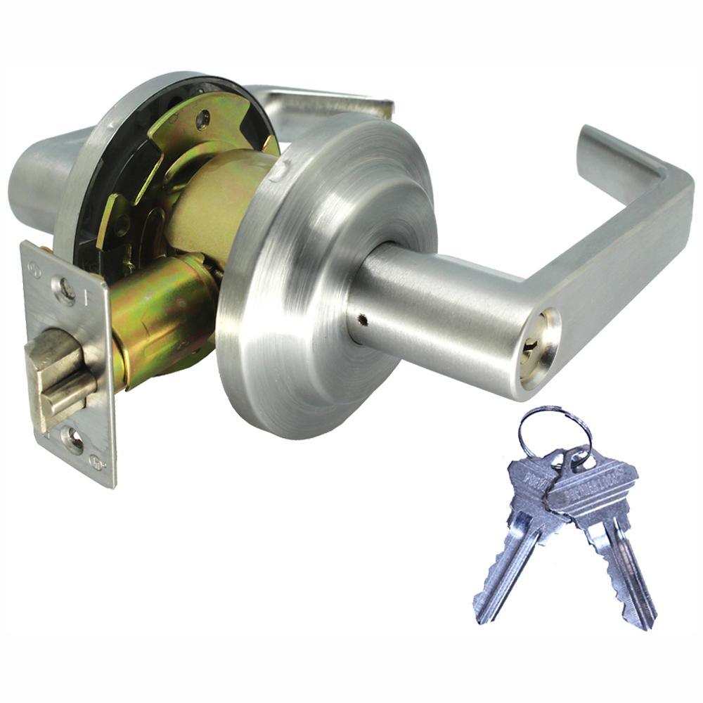 Secure your doorway with this heavy-duty Lever Handle lock. Each lock is easy to install and includes 2 SC1 keys. Product is UL Certified.
