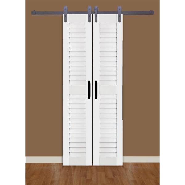 42 in. x 84 in. Louver/Louver White PVC Composite Split Barn Door