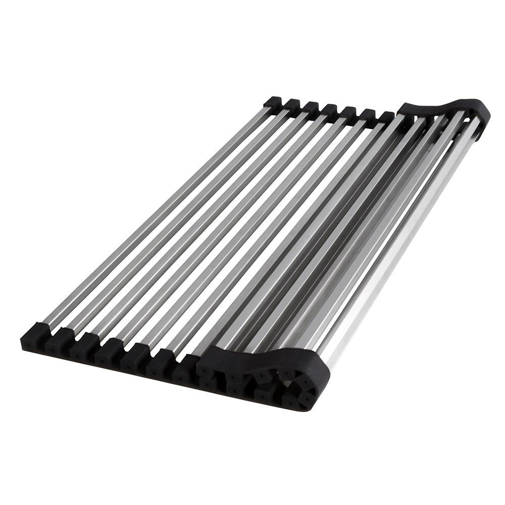 • Includes bamboo cutting board, deep stainless steel colander, and dish-drying roll-up rack that slide on the ledges converting your sink to a workspace