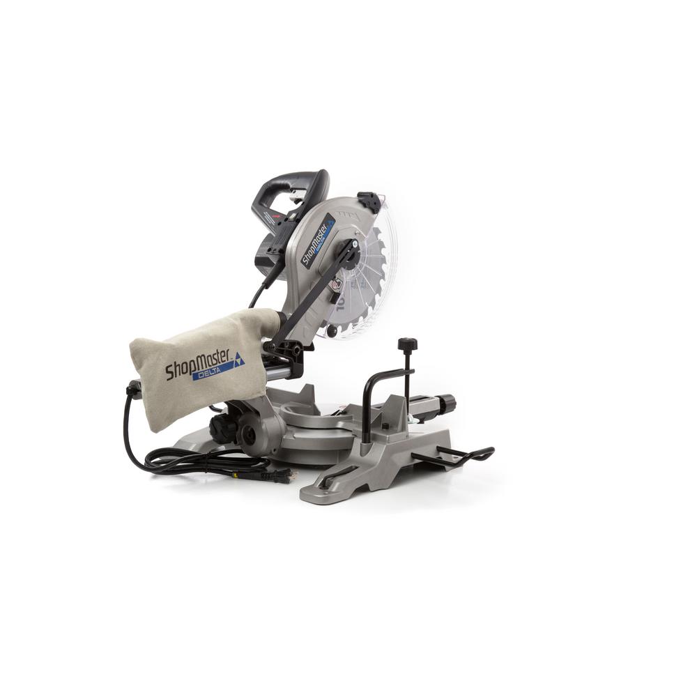 This Shopmaster 10 in. Slide Miter Saw is made by Delta Power Equipment and comes with a 3-Year Warranty. There is 1 sliding miter saw per package. The unit includes a dust collection bag and a work clamp. A built-in laser lets you know where the cut will be made.