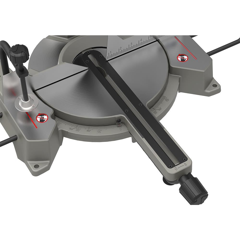 Mitering capabilities miters to 45 left and right with stops at 0, 15, 22.5, 30 and 45