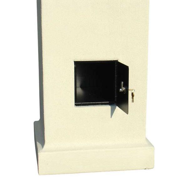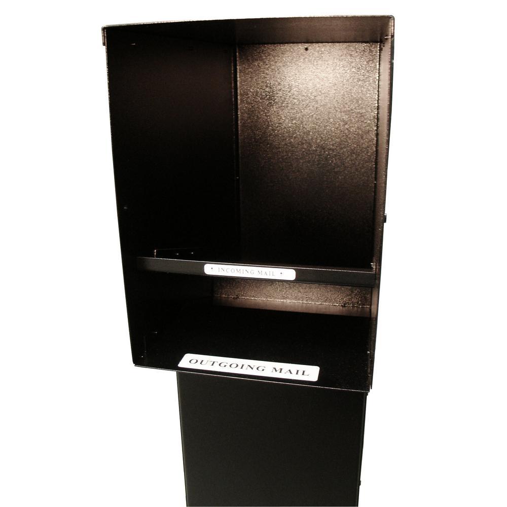 Add security to your Manchester by installing a chute that drops your mail out of reach of unwanted hands. The mail drops down to a locking rear door for easy collection. The chute is made of 16-Gauge powder coated steel and includes a separate compartment for outgoing mail. Maximum solid package mailbox can receive: 7.5 in. L x 7.5 in. W x 14 in. H. Please note the Manchester Newspaper Holder is not available with this option.