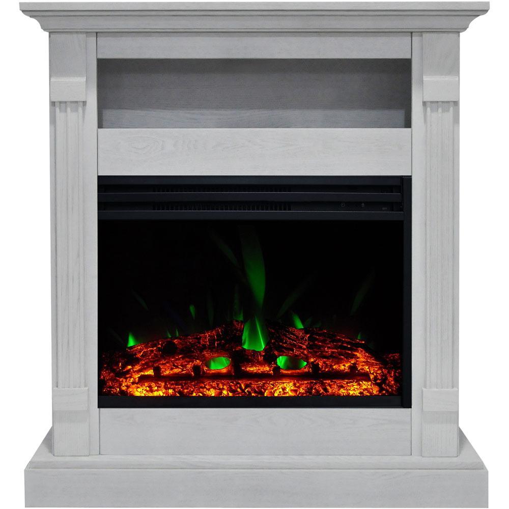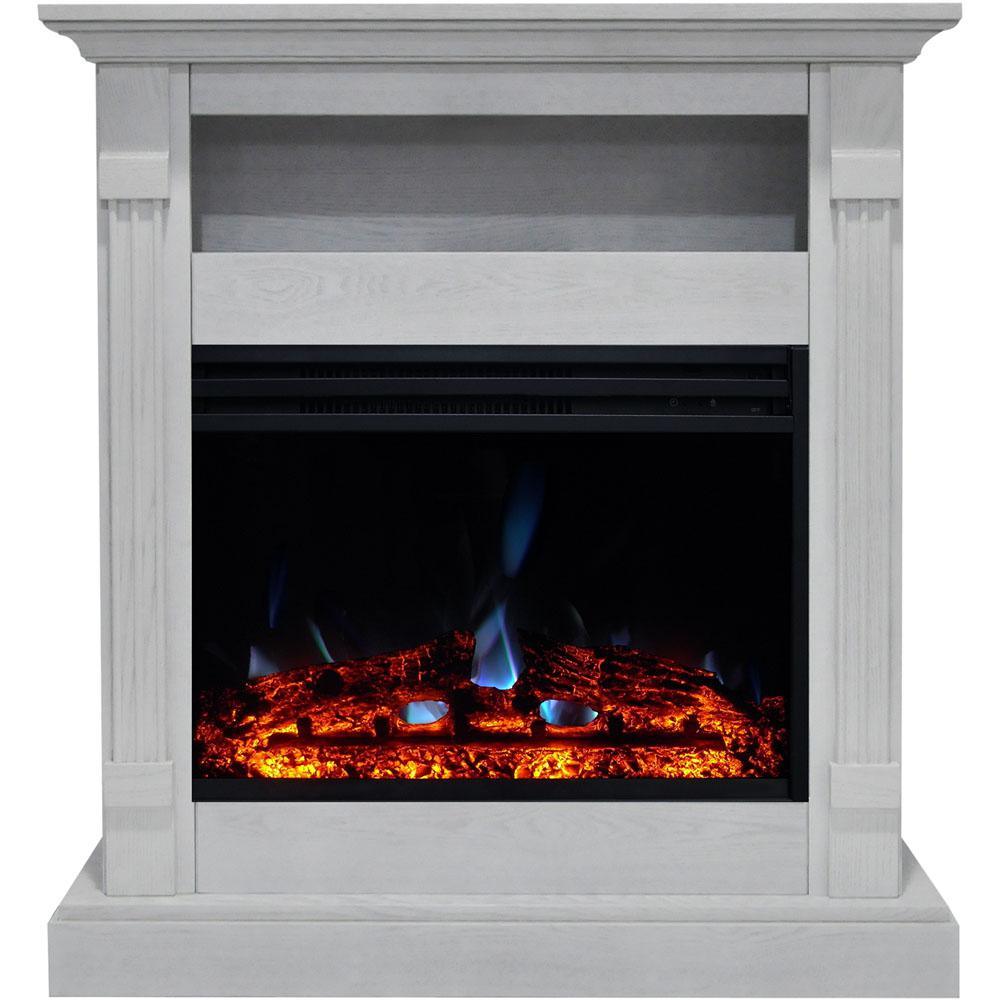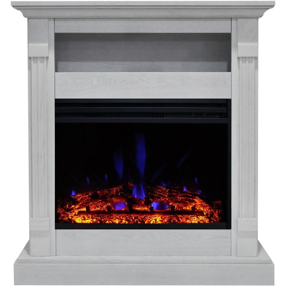 Sienna 34 in. electric fireplace heater with enhanced log display, multi-color flames and white mantel