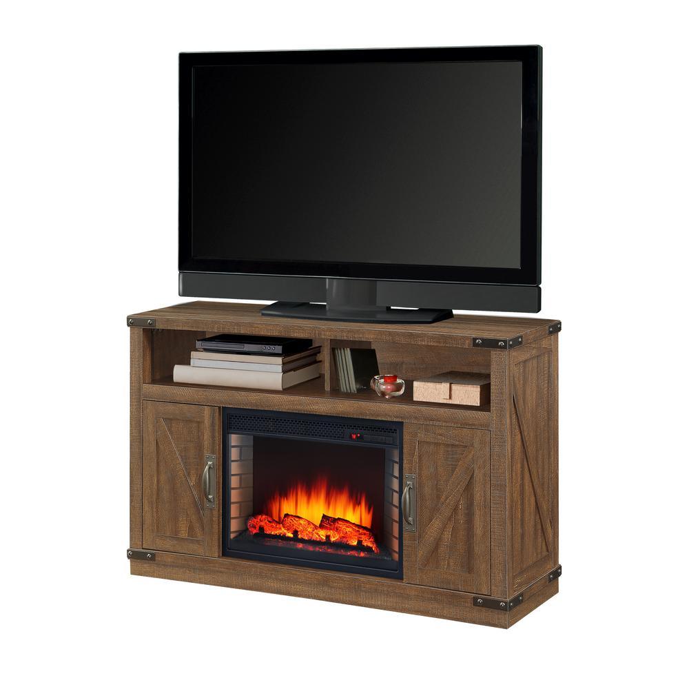 Add charm and warmth to your living space with the Muskoka Aberfoyle 48 in. Media Electric Fireplace. This customizable electric fireplace allows you to enjoy the ambiance of a fire in every season. Easily adjust the flame brightness and temperature with the multi-function remote control. The 1,350-Watt heater will heat a room up to 400 sq. ft., and the mantle will house your TV up to 48 in. W with a built-in compartment for your media playing devices. The rustic brown finish and barn-door-style panels bring a homey, farmhouse feel to any space. Provide a focal point for your family room with the ambiance, warmth and entertainment of the Aberfoyle Media Electric Fireplace from Muskoka.