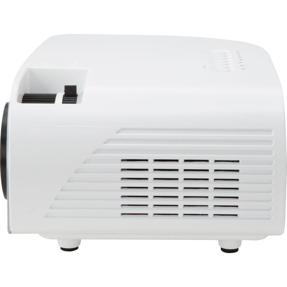 Mini Projector will turn any space into entertainment central. Project your favorite movies, games and photos up to a 150 in. screen size with HDMI (2), VGA, USB and AV. Easily adjust the picture for the best viewing angle with manual focus and angle correction. Connect your speakers to the audio out, via Bluetooth, or use the built in speaker to complete the scene.
