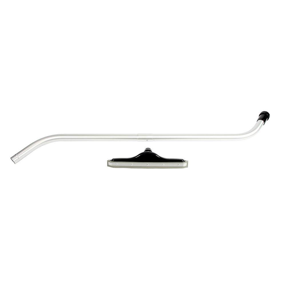 The 92168 is designed for fast effective collection of water and slurries with standard wet-dry commercial vacuums and home shop vacuums equipped with 1-1/2 in. hose. It is designed to fit to auto-scrubbers equipped to accept squeegee recovery of water in areas not normally accessible to the unit. It is suitable for use in disaster recovery applications where water is being recovered using carpet extraction equipment. It is suitable for new or replacement of tools standard to major commercial wet-dry vacuum brands including Karcher, Tennant, Nilfisk, Perfect, Power Flight, Hawk, Castex, Mercury, NSS, and Sanitaire. In addition it can be commercial quality upgrade to home shop equipment equipped with 1-1/2 in. hose including Shop Vac, Vacmaster, Rigid, Vac Works, Numatics, and Craftsman. The set includes a 14 in. squeegee tool and 2-piece aluminum s-wand with ABS compression coupling. The locking nut on the ABS compression collar can be adjusted to permit the tool to rotate on the wand end or when fully tightened will lock the tool in a fixed position.