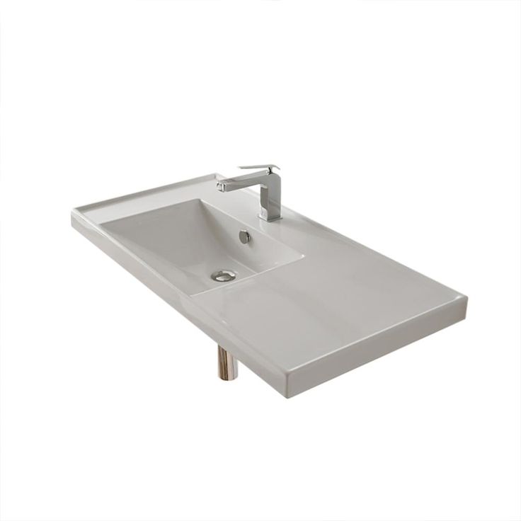Regular price $405.00This stylish sink made out of beautiful white ceramic comes with an overflow and single faucet hole option. Adding to its versatility, it can be ordered as either a self rimming or as a wall mounted sink. Perfect for contemporary or modern styled bathrooms, its ample counter space on the right side creates the perfect space for bathroom accessories, towels, or any other needs.
