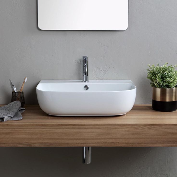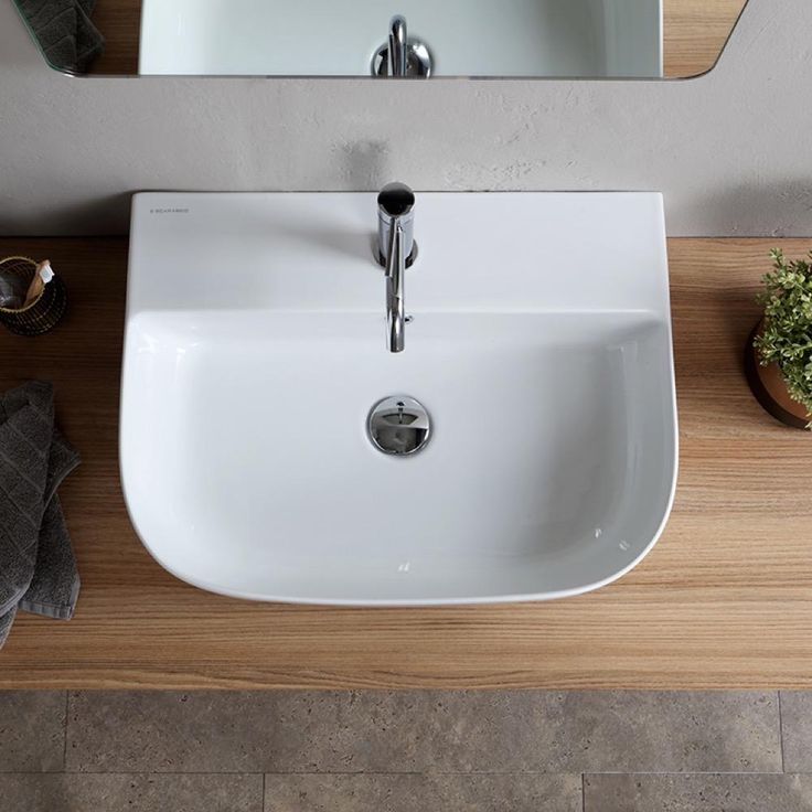 Perfect for the modern or contemporary bathroom atmosphere, this 22 inch bathroom sink is made from built-to-last white ceramic with an ultra thin edge. This sink can be used as a wall mounted sink or a vessel sink and is available in one hole option. Made in Italy by Scarabeo and part of the Glam collection.