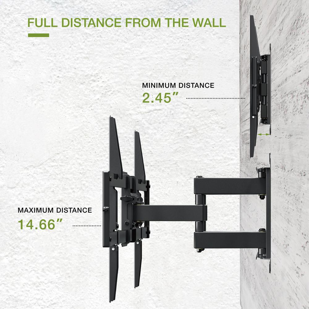 Adjustable and view comfortable: +5°/-15° tilt, 45° swivel (maximum swivel angle depends on TV), +/-3 post-installation adjustment allows perfect TV leveling, all these make your TV flexibility and provide a suitable view based on your seat in the room