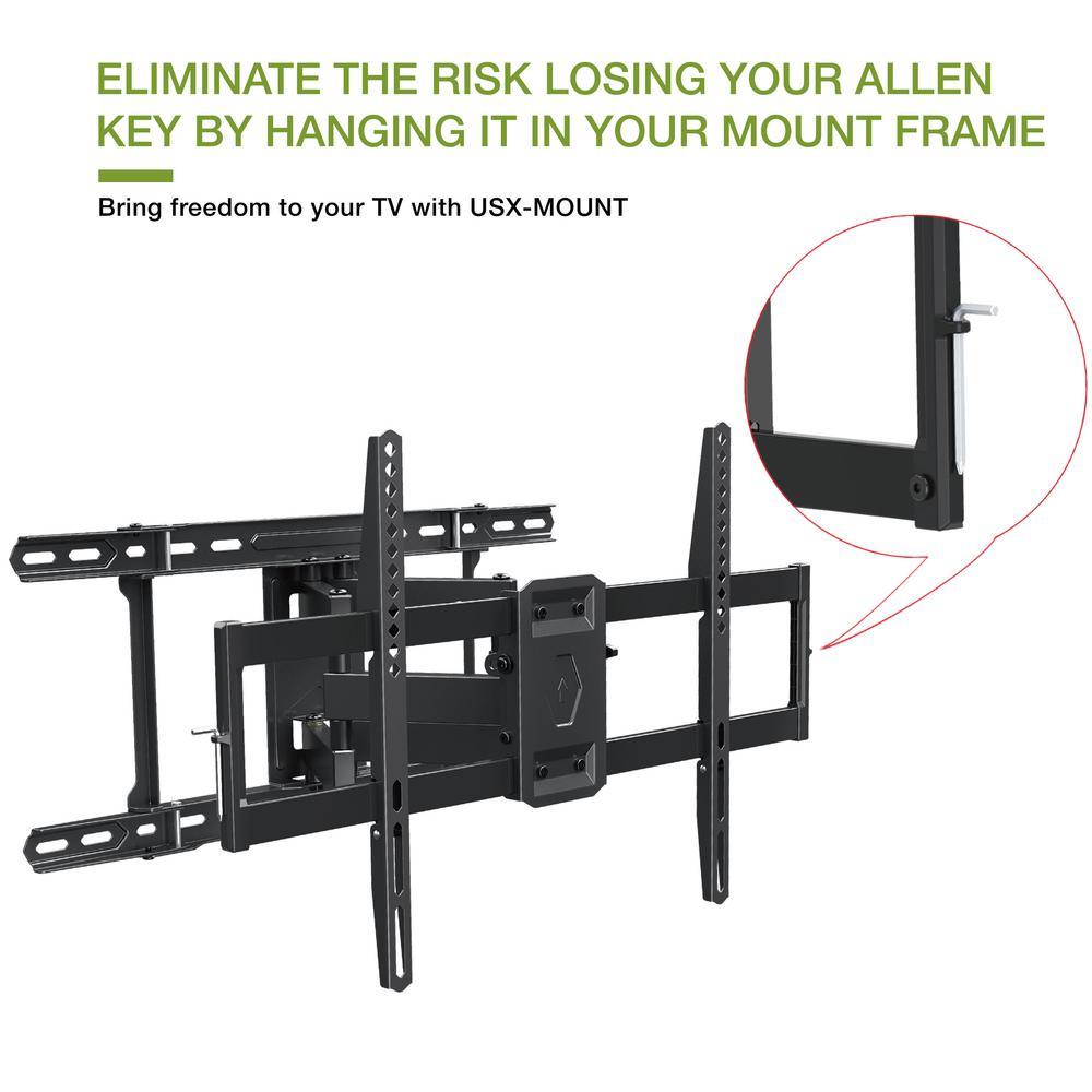 This full motion TV mount is made by a professional factory which has more than 20 years mount experiences. This X-Mount articulating wall mount is designed for most 42 in. - 80 in. Flat Panel TVs weighing up to 99 lbs. and TVs with VESA mounting hole pattern 200x100, 200x200, 400x200, 400x400, 600x400. It can provide a better view for you because tilt angle +5°/-15°, swivel angle 45° and +/-3 post-installation level adjustment allows the TV to perfect level, which makes it easy to view your TV from multi-angles.